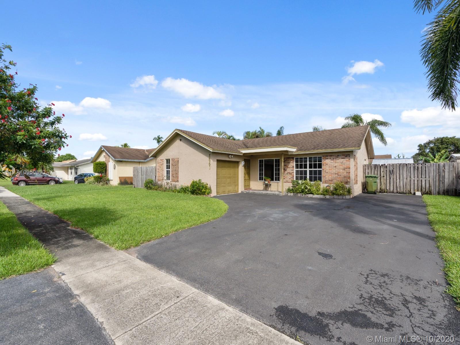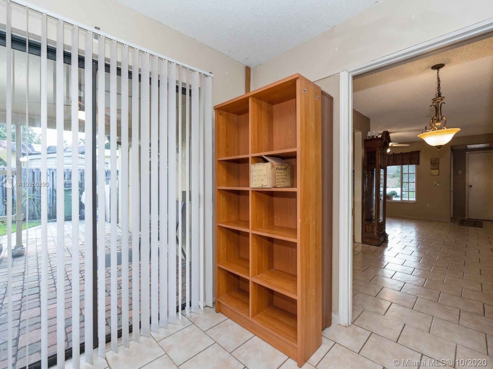 Come fall in love with this home perfectly situated in a sought-out neighborhood of Pembroke Pines. This house is ready for you to put your mark on it and make it yours. Walk into an open living space, tile throughout main living area. Dining room opens to an additional bedroom or office, that overlooks pool and sliding doors that will lead you to covered patio. Kitchen has been updated with stainless steel appliances, wood cabinets with soft close features, and granite countertops. This kitchen offers lots of natural lighting as well as storage and access to covered patio. Split floor plan, carpeted bedrooms, updated bathrooms. Outdoor oasis with pool, covered patio, and shed; perfect for entertaining. Fenced yard is spacious with gates on both sides, double gate for easy RV/boat parking.