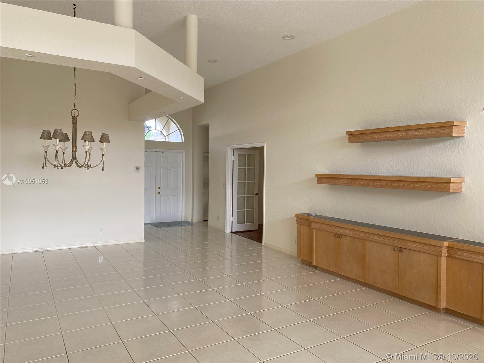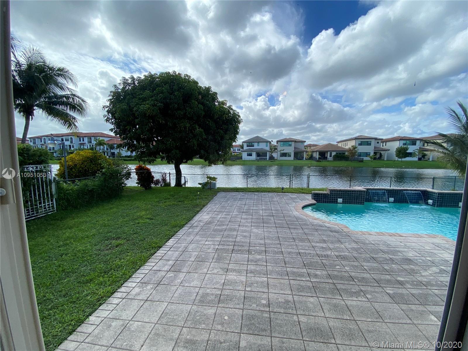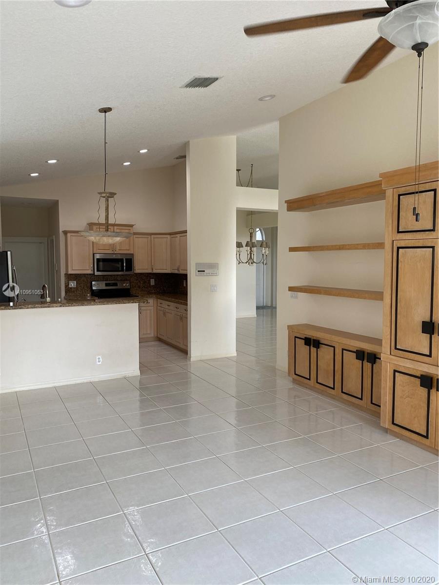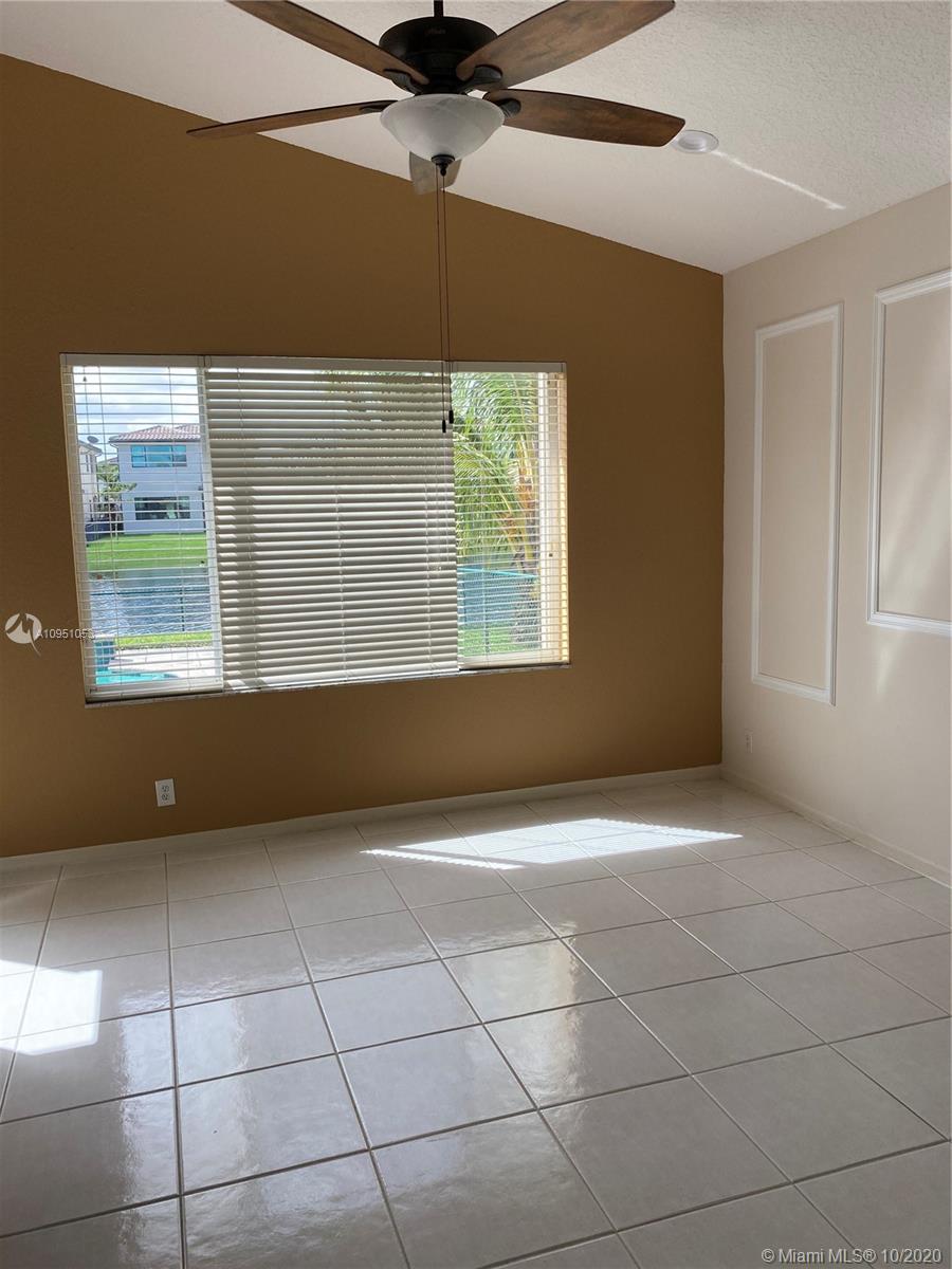 Beautifully kept Pembroke Lakes home in Eagle Creek Community. Watch the magnificent South Florida Sunset from the convenience and privacy of your back lake view ,pool and terrace. Excellent location to accomodate Dade and Broward commuter. House with White tile throughout common areas and laminate flooring in bedrooms.Second bathroom completely remodeled with very modern style. Master bedroom with access to pool area and covered terrace. Spacious living,dining and family room area. Enjoy the 2027 living square feet of your home with family and friends. Stainless steel appliances, washer and dryer included in purchase. All ceiling fans and chandeliers will be part of purchase. Pool pump and sprinkler pump were recently replaced. Accordion shutters in all windows. Two car garage.