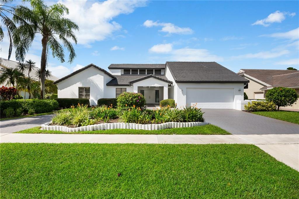 Welcome to this exceptional renovated home located in gated Boca Woods Country Club. Stunning modern home with an open spacious concept great for entertaining! Property features spilt bedroom plan,w/three bedrooms, two and a half baths, circular driveway, two car plus golf cart garage, air conditioned room in garage. Additional features include oversized island in kitchen, great room, formal dining, dry bar, fitted closets, laundry room w/utility sink.Enjoy the outdoor lifestyle this home offers with a screened in oversized patio,pool&spa,dining area w/retractable awning.Club offers two 18 hole golf courses,driving range,putting green,tennis,fitness center,pool,pickle ball,dining.Mandatory membership $65,000 paid 10 days prior to closing,$30,000 refundable when you sell home.See attachment