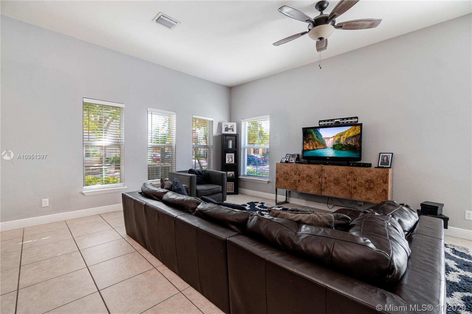 Beautiful Two-story Corner Townhouse for Sale! This spacious 2 car garage home is 1,848 sq. ft. It has 3 perfectly sized bedrooms and 2.5 bathrooms. Walk though the front door into a lovely foyer. The first floor layout consists of the living area, dining, kitchen, and half bath. All Bedrooms are located upstairs, along with the washer and dryer in the hallway. The Master Bedroom (with a walk-in closet) is large with plenty of space for a king size bed and a sitting area. This townhouse is located inside the quiet neighborhood of Mirabella. The community offers a community pool and playground. Enjoy the Lake while taking a stroll outside. Mirabella is in very close proximity to Miramar Pkwy, expressways, stores, and restaurants.