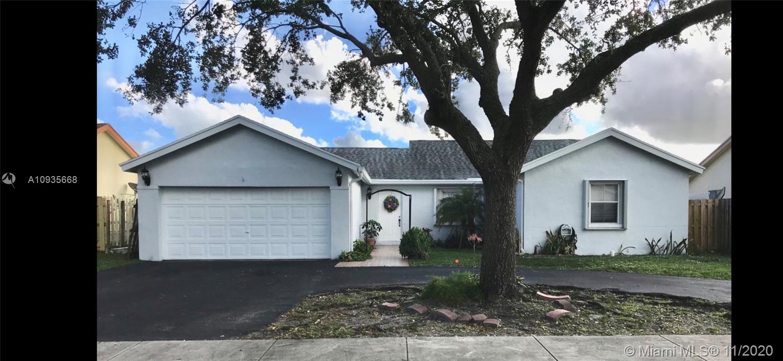 Beautiful home with 3 bedroom included a walk-in closet, 2 bathroom, 2 cars garage and a circular driveway with a gorgeous water view from a fully screened in back patio. This home includes a renovated kitchen, and baths very well maintained in the wonderful community of Banyan Estate. Accordion shutters for an added insurance discount, a great convenient location close to Sawgrass Mills Mall, Sawgrass Expressway, library, supermarkets, and restaurants. A must see!