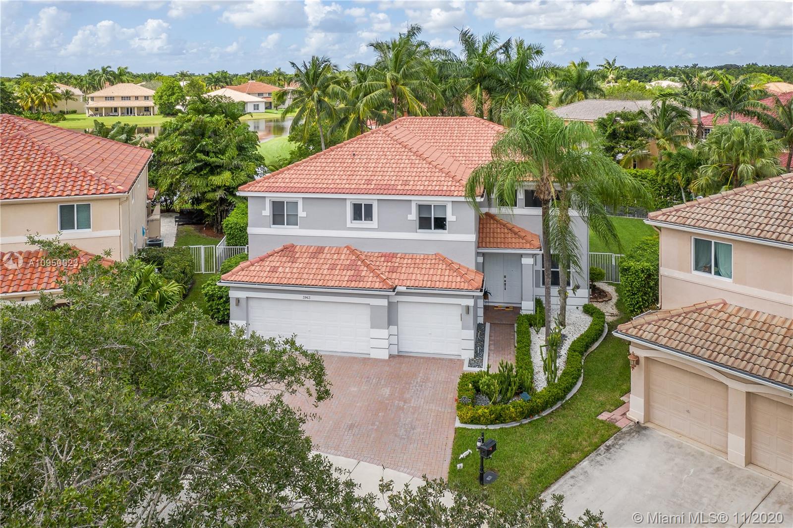 GORGEOUS PROPERTY! Completely remodeled with top of the line features. Located on a vast lot 10, 530 sf on a cul-de-sac with a spectacular view to the lake and pool, HURRICANE IMPACT GLASS WINDOWS throughout entire property, 6 bedrooms with custom closets, 4 bathrooms, 3 car garages, 1 bedroom and full bathroom downstairs. The entire home has beautiful Italian wood style tiles including stairs and bedrooms, bathrooms are upgraded with Italian tiles, high quality vanities and glass doors showers. The kitchen has siltstone countertops, stainless steel appliances (kitchen Aid), breakfast nook, formal dinning, living and family room. Desirable gated community "The Ridges", amenities: pools, playgrounds, clubhouse, areas for jogging and more. Just painted. Over $250K in upgrades