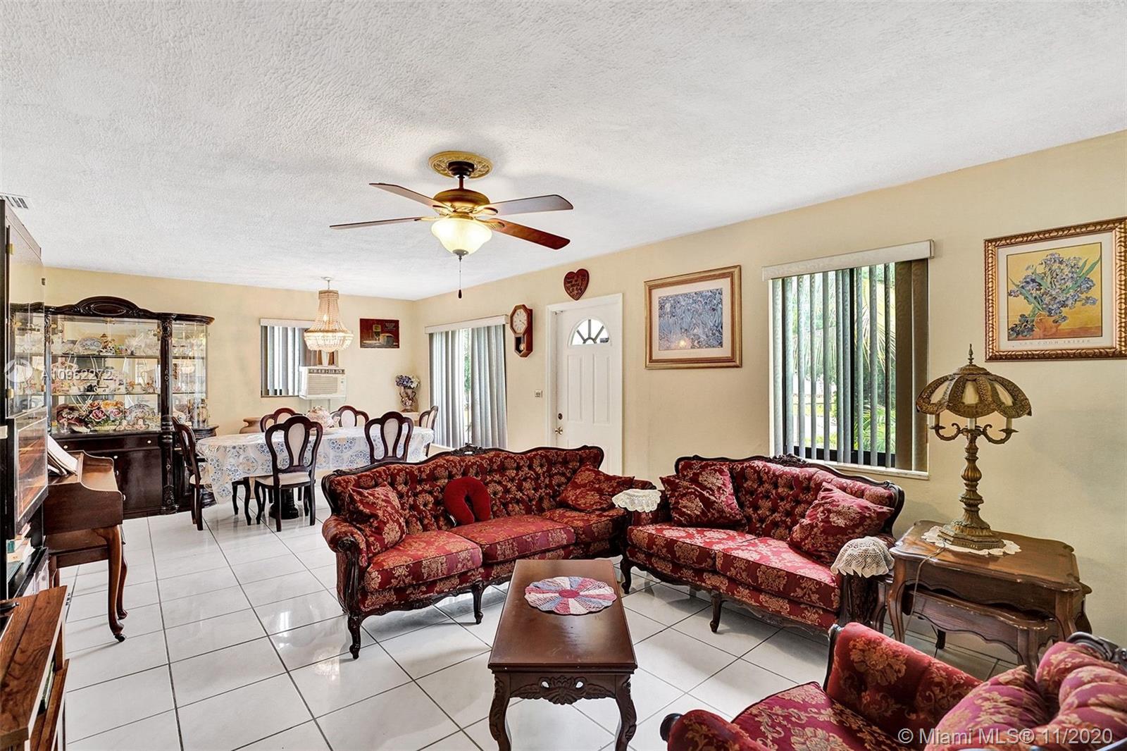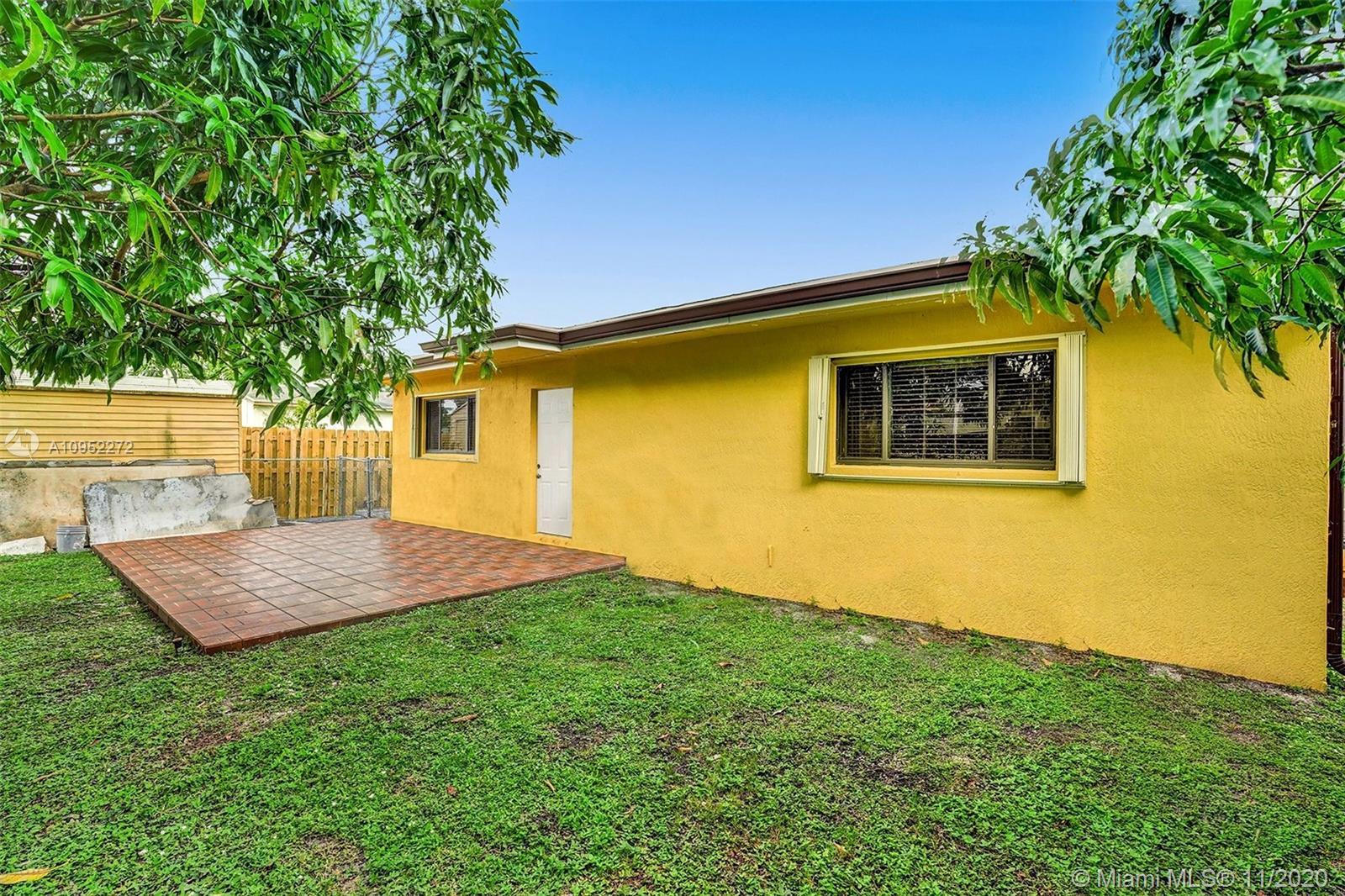 3 Bedrooms 2 Bathrooms over 1,500 SqFt. Split floor plan with Master Bedroom on the back side of the house. Two living spaces, Front living room and a back Florida room. Complete yard fenced in with long driveway that can fit a Boat or RV. Fruit trees all around, Several types of Mangos, Avocados, Soursop, and Coconuts. Storage shed. New Roof 1 Year old. Accordion shutters all around. Central A/C.