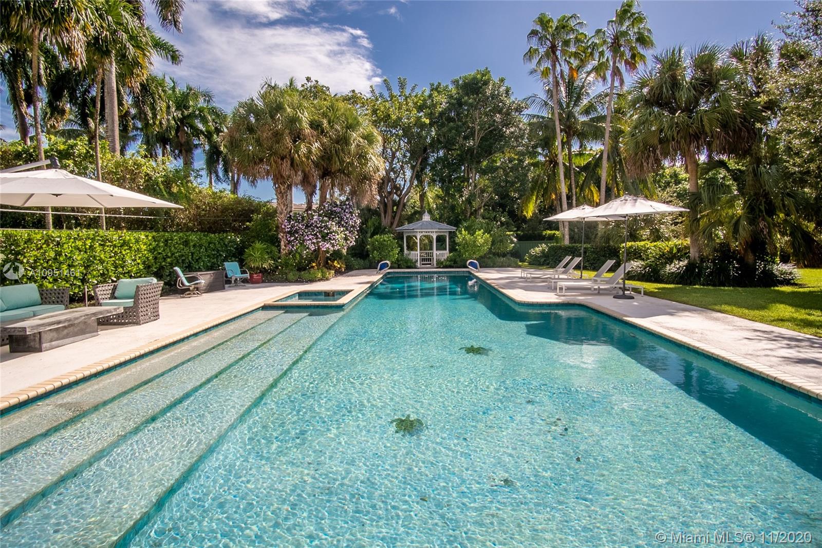 Prime North Pinecrest location On Builders Acre; Light, bright, and open elegantly appointed 5 Bedrooms and 4 1/2 Baths. This open layout combines old-world craftsmanship with modern design and offers the perfect amount of natural light, updated baths, and a spacious kitchen with top of the line appliances. Private master suite on the second level with soaring ceilings, balcony with stunning views of the pool area, and high end finishes along with steam sauna in the master bathroom. Exit via an assortment of French doors to a Resort-like backyard with a sparkling lap-size pool, separate spa, outdoor kitchen, and a covered patio, professionally landscaped areas are ideal for entertaining friends and family. See this home for yourself so you may experience the Pinecrest lifestyle!