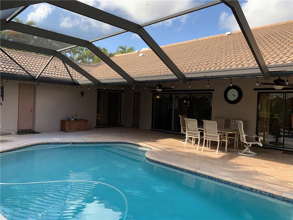 Tastefully updated 4 bed/2.5 bath pool home on serene waterfront canal. Feel the flowing spaciousness in the living areas and comfortable floor plan. Remodeled kitchen features wood cabinetry, granite countertops and stainless steel appliances. Updated laminate flooring in all bedrooms. Formal dining room and eat-in kitchen with custom built bar. Custom cabinetry throughout. Large screened pool deck with custom built-in outdoor kitchen. No HOA fees. This home is move-in ready and a MUST see!