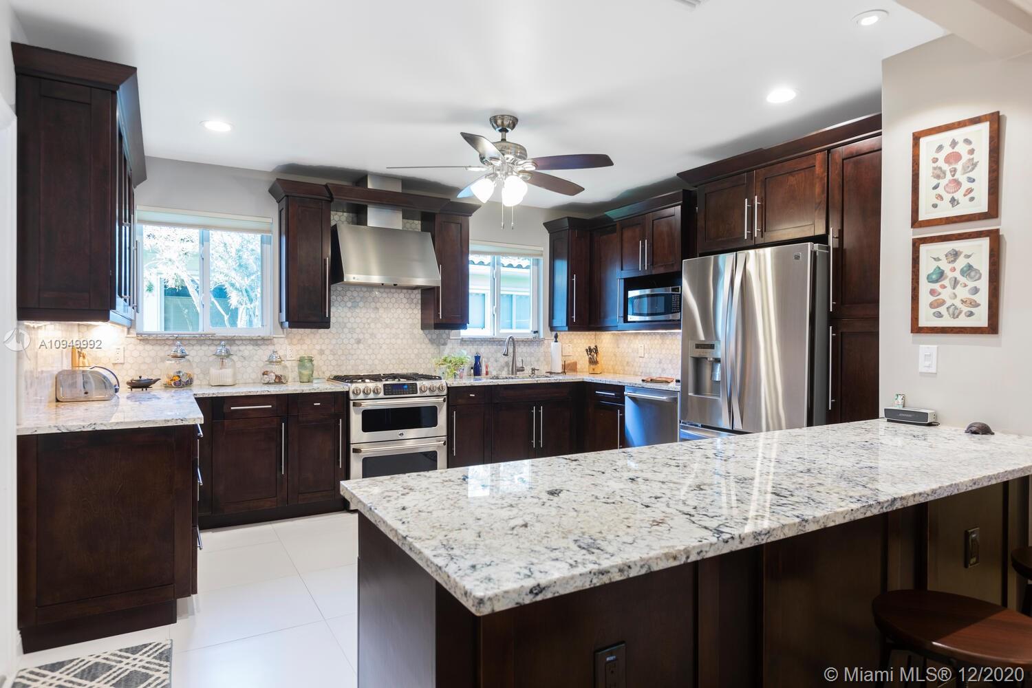 This is a fabulous turnkey home steps from the bay and on a lovely street. Spacious open concept home with many upgrades. Beautiful kitchen, granite countertops, s/s appliances, gas stove, new cabinets and tons of storage. Hurricane proof windows and doors, electric garage door, Tesla charging station. Living room with crown moldings, freshly painted ceiling, sliders open to the pool and patio. Large bedrooms with en-suite bathrooms, walk-in closets. Lush landscaping and private pool area w/sink, fridge, BBQ w/natural gas included, new pavers on patio, heated pool completely re-done 2014, new pool pump 2018. Septic tank cleared 2018, exterior of house and patio painted 2020. Must wear masks for showings!! *SEE 3-D VIRTUAL TOUR*
