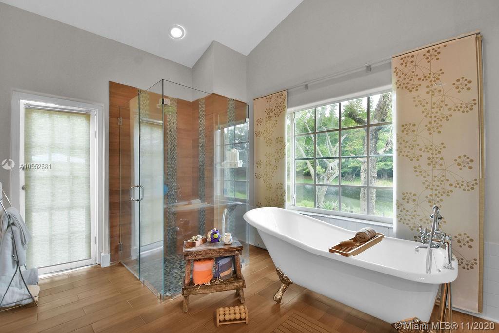Spectacular house recently remodeled contemporary style. Panoramic doors throughout the house that allow you to enjoy the beautiful garden with a tropical design and view of the lake, creating an oasis. The house has a very spacious open concept thanks to the double height of the ceiling. Plenty of natural light that reflects on the marble floors. The kitchen has 2 windows where you can see the gourmet garden. The master bedroom is at ground level, offering privacy and closeness to the garden and yoga area. The spacious master bathroom It was designed with natural elements such as stone, Italian wood-style ceramics that gives a feeling of warmth and incredible nature and invites you to take relaxing baths like in a spa. Plenty of closets and storage. Peace of mind with the new roof.