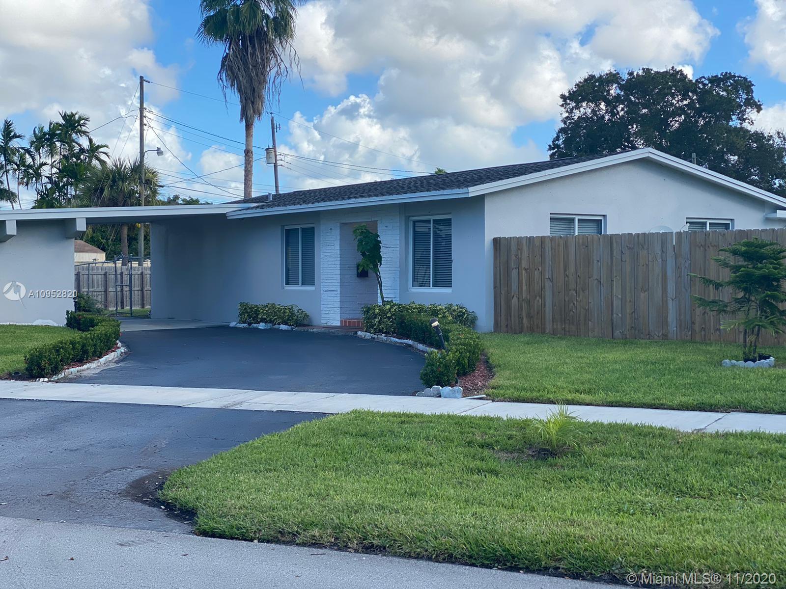 Location-Best Schools-Beautiful One Story Corner House w/Pool=Welcome to prestigious Hollywood Hills. Upgraded Kitchen cabinetry w/Center Island-Corian countertops. Central AC. Impact Windows on most Windows/Spacious Florida Rm w/door view of the pool-can be used as 3rd bedroom-it has closet! Main bedroom w/Amazing Walk-in closet. Beautifully renovated Main bath w/shower. Tub in Social bath. Spacious laundry area (Washer/Dryer included) access to pool deck & covered terrace, great for entertain/relaxing! Gas heater/Fully fenced yard. Plenty parking-1 Carport-Driveway fits 4 cars or room for boat. Large Storage area! Easy access to I-95-595 & Turnpike. Minutes from Hollywood/Ft Lauderdale Airport. Walking distance to Joe DiMaggio Hospital & Memorial Regional Hospital.