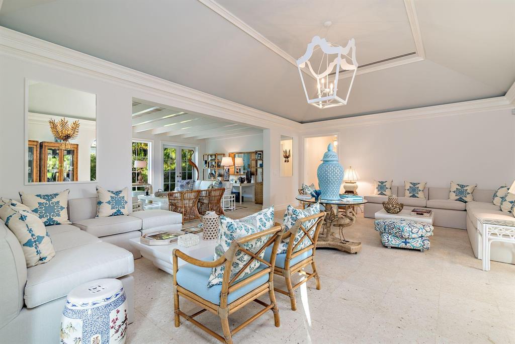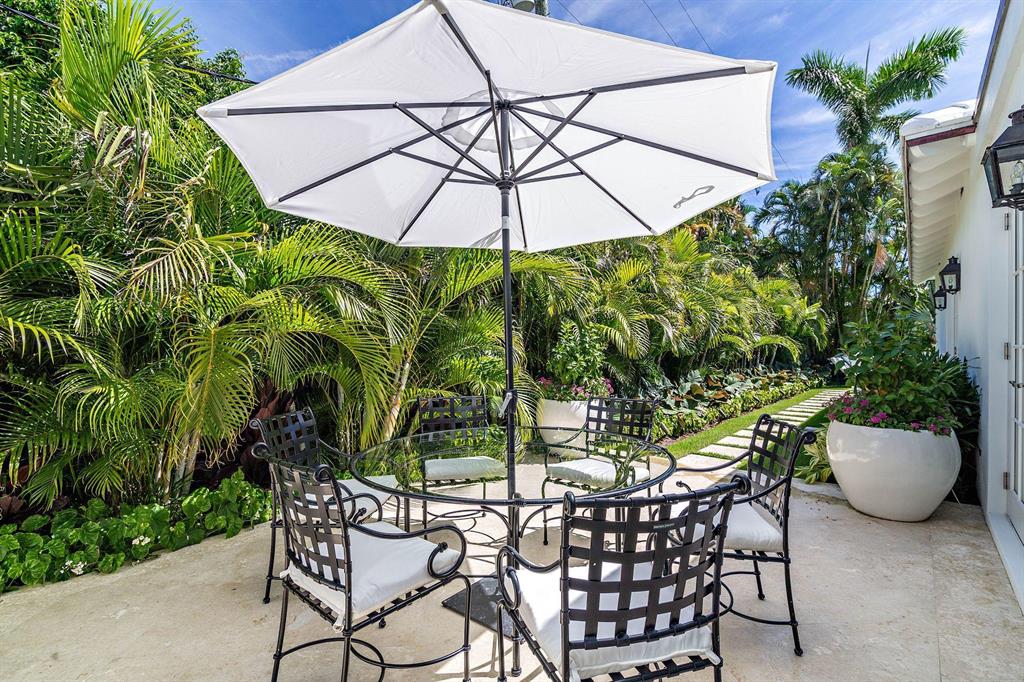 Super Chic Palm Beach Modern Residence. This stunning house was completely renovated and redesigned by renowned architects Richard Sammons & Anne Fairfax in 2018. There are 3 bedrooms, 3 baths and 2 half baths. Interior elements include natural coquina stone floors throughout, pecky cypress beams in the dining loggia, soaring tray ceiling in the living room and multiple sets of French doors leading to the surrounding gardens and terraces. This light filled house is ideal for entertaining with its open modern flow. The outdoors consists of multiple terraces including a covered terrace over looking the pool, set in a lush tropical setting surrounded by palm trees.The property includes a one car garage, exterior outdoor lighting, all new impact windows and doors, new roof, electric & plumbing