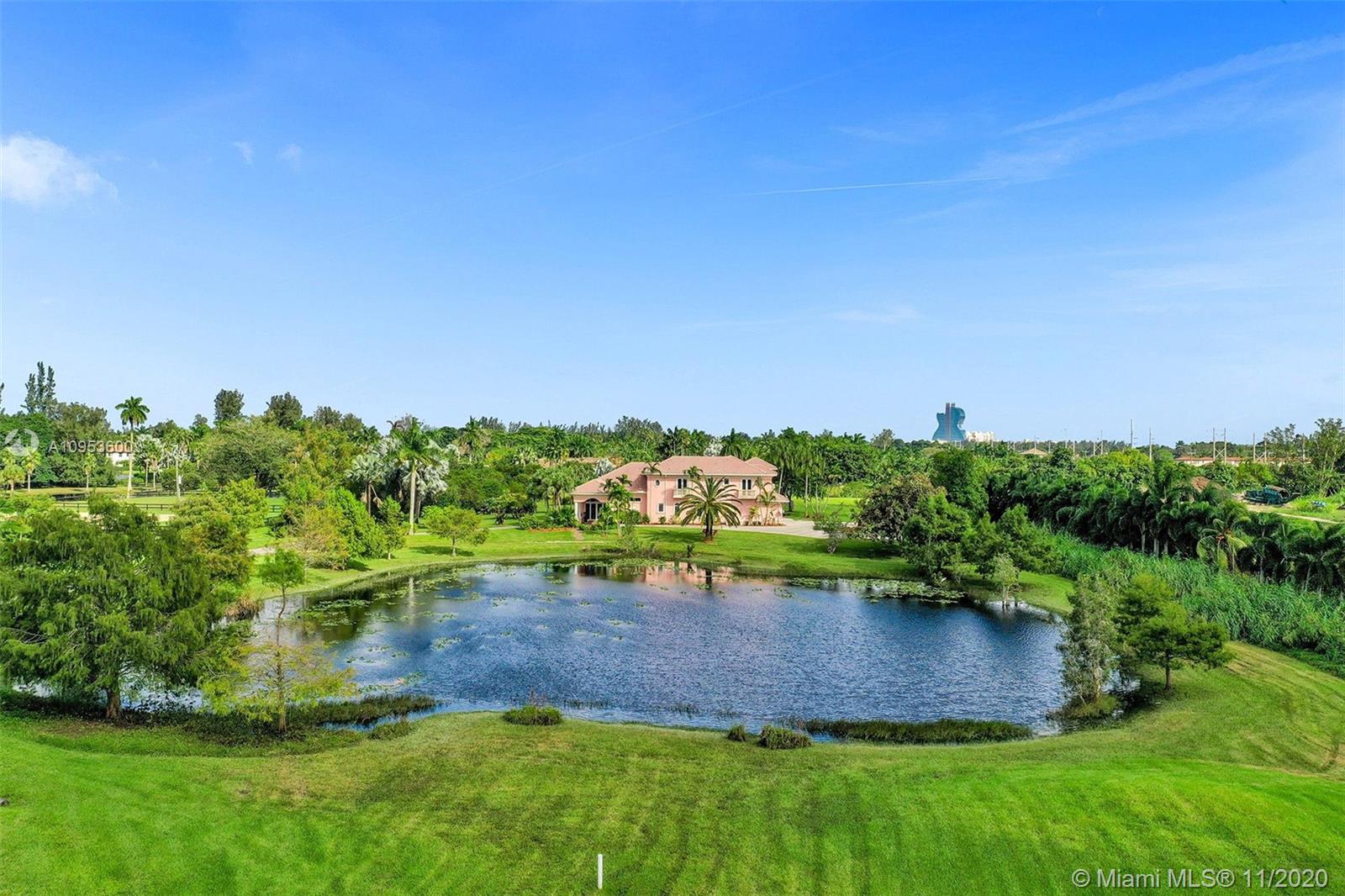 Fabulous opportunity for a sprawling, private estate in the heart of East Davie. 10 beautiful and quiet acres await you with easy access to major roadways, making any commute a breeze. This secluded, comfortable and unique home offers 8 bedrooms and 7.5 baths with a separate guest quarters; 6 bedrooms of which are their own private suites. Effortlessly host friends and family with the privacy afforded by this well-executed floor plan. This generous home includes a large 3 car garage, an incredible and refreshing 74 foot pool with an additional spa, hurricane impact windows, the comfort of a 4-zone HVAC system & plenty of room for horses. Take a relaxing stroll down the winding drive and discover your new luxurious paradise.