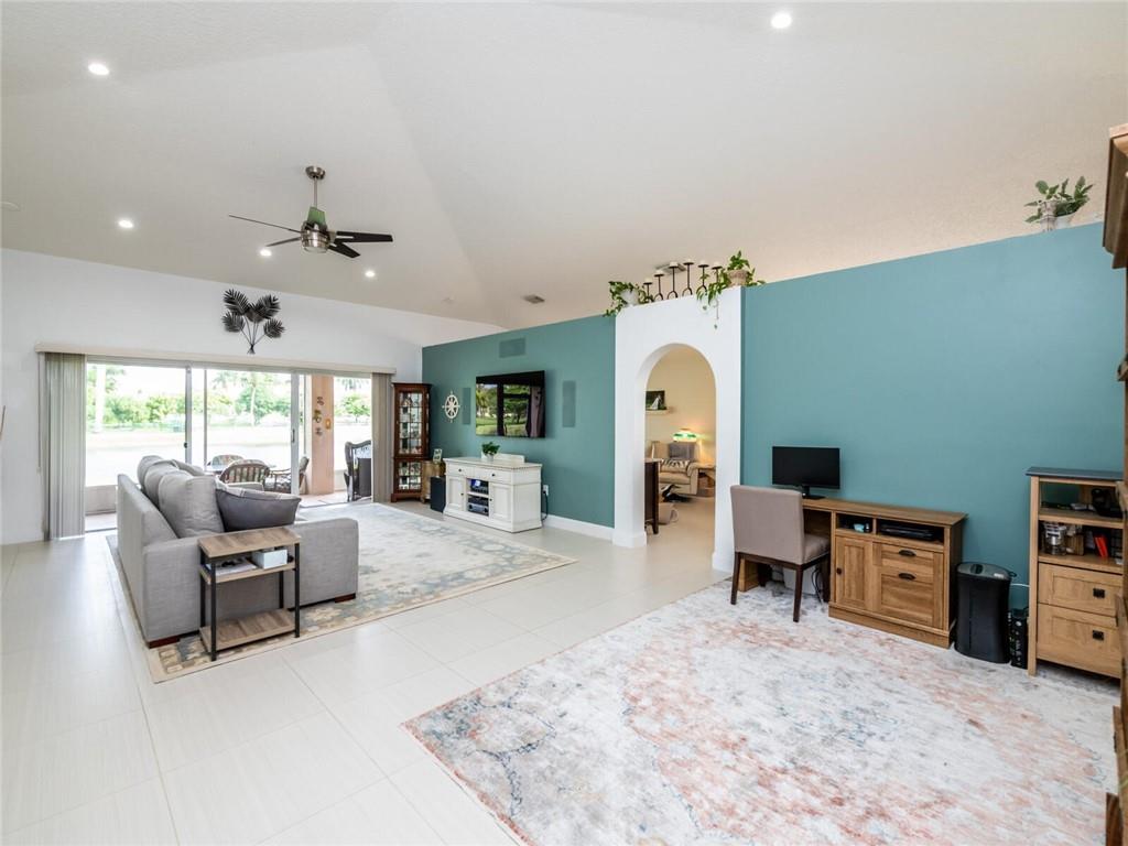 Beautiful home with gorgeous view of the lake in exclusive WINDSOR PALMS gated community. Very open and spacious living areas, both living room and family room, with tile throughout. Split-bedroom floor plan. Large, spacious master bedroom with dual walk-in closets and a view of the lake. Master bedroom and living spaces open to a screened-in patio. Stunning gourmet kitchen with dark wood cabinets, quartz countertops, and stainless-steel appliances. Great curb appeal. Priced to sell quickly!