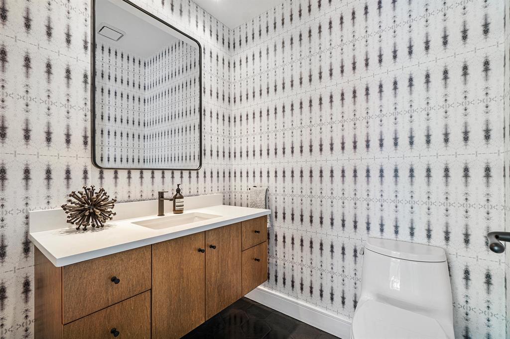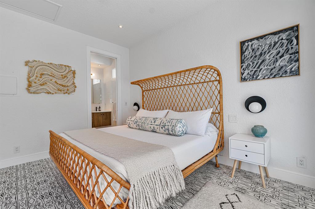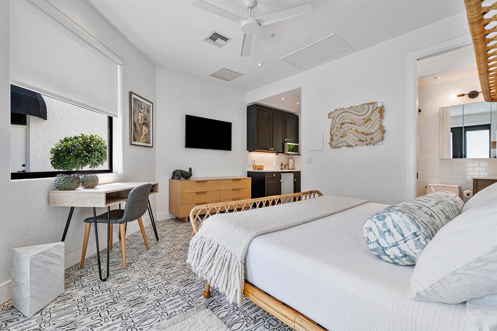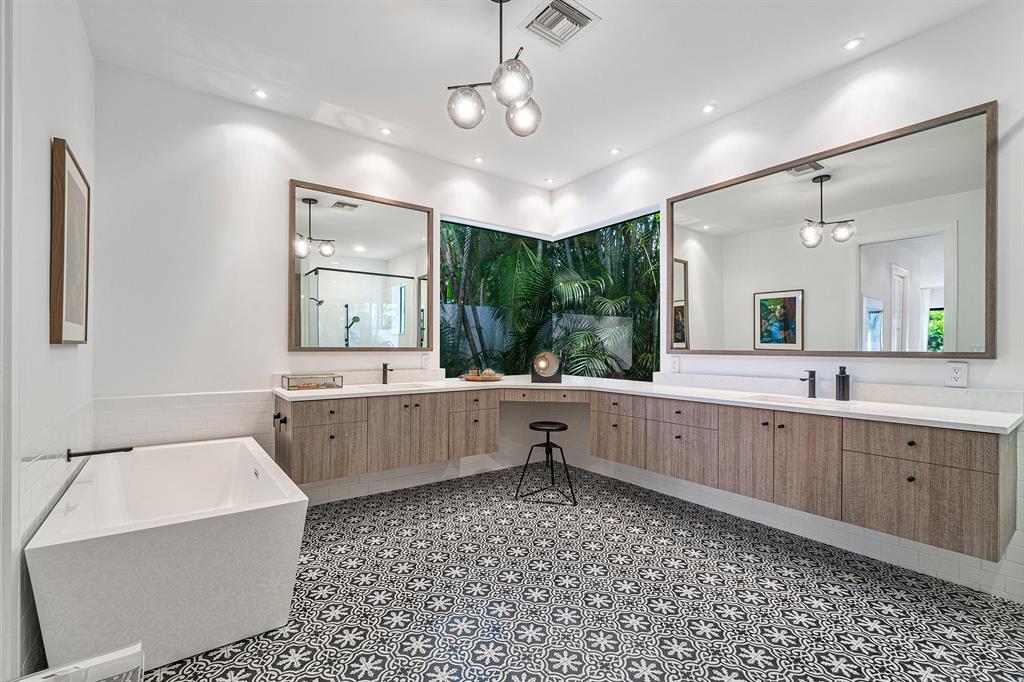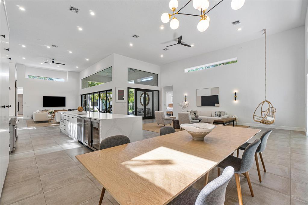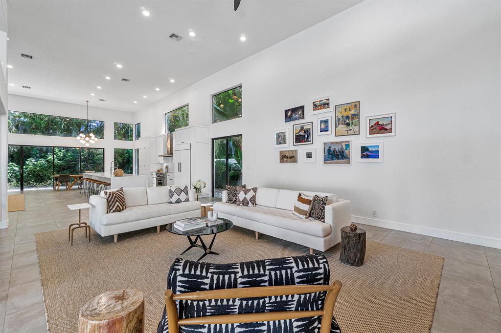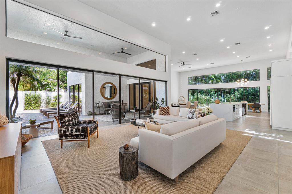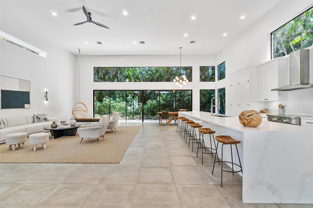 A chic sense of combined organic and modern elements creates the perfect balance for this one-of-a-kind home. Upon entering the private courtyard you are greeted by a charming balance of nature that connects seamlessly with the pool and outdoor entertaining spaces. Soaring ceiling heights are inundated with natural light while the open-concept design creates an impressive statement when walking into the main house. The sizable open kitchen with a Ceasar stone waterfall island smartly integrates Sub-zero refrigerator and dual wine coolers, Wolf appliances, and an intelligent design behind the matte white cabinetry. The master bedroom features tranquil views, dual walk-in closets, and a clean-lined contemporary master bathroom with a glass feature wall that incorporates nature into the space