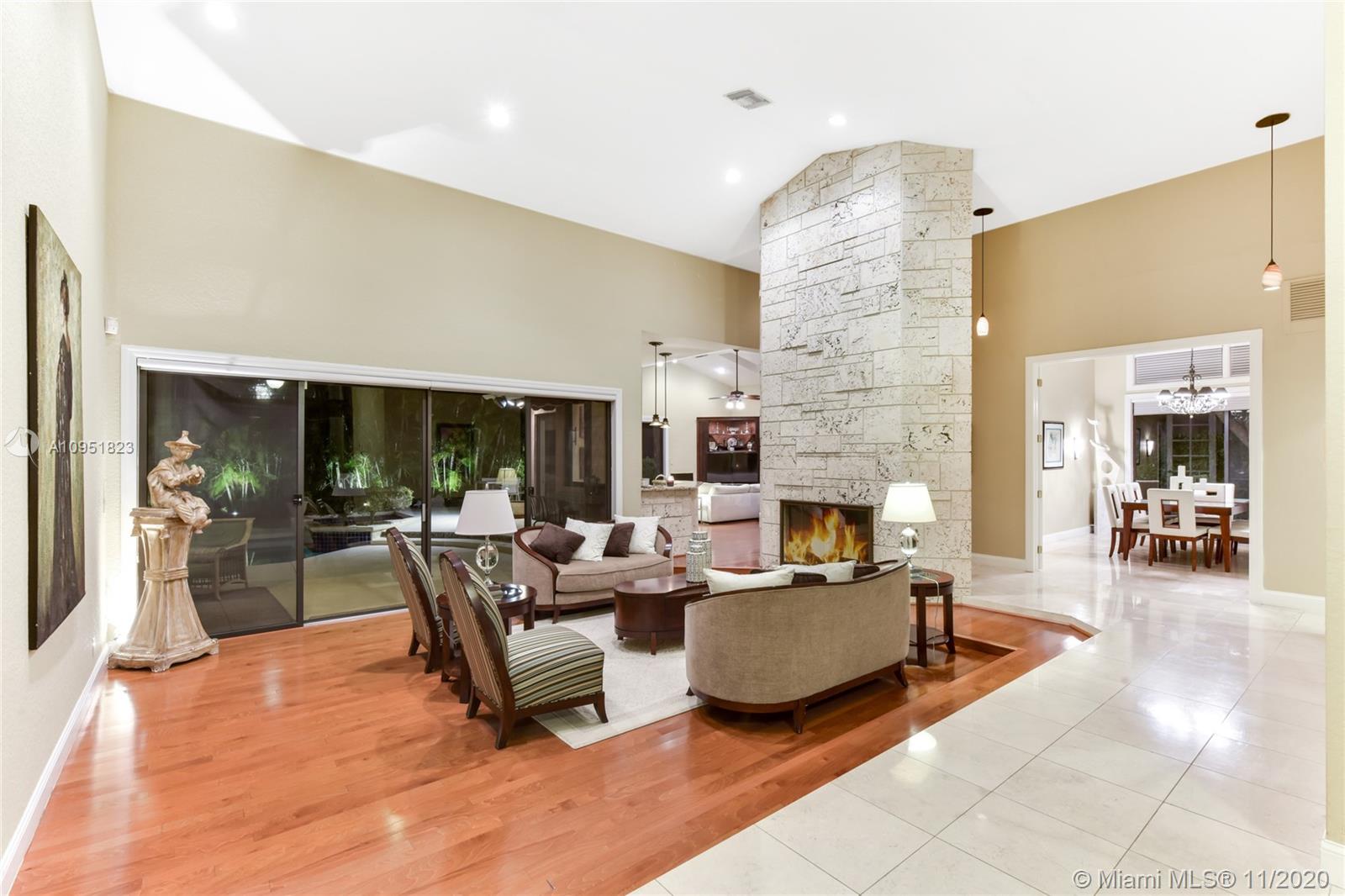The house of your dreams just hit the market! Stunning 5 bedroom, 4.5 bathroom home in the highly desirable gated community of Eagle Trace! This property offers magnificent features that will have you in love at first sight! Inside you have a grand foyer entrance, a beautiful living area with coral stone fireplace, fully equipped wet bar, amazing kitchen with stainless steel appliances alongside skylight dining, formal dining, family room, spacious bedrooms, and amazing grand master suite with two walk-in closets and a master bath with a spa tub, standing shower, and many more features you just have to see to believe! Outside you have a resort-style backyard with multiple seating areas, bluetooth speakers, heated saltwater pool, oversized jacuzzi, and lush landscaping!