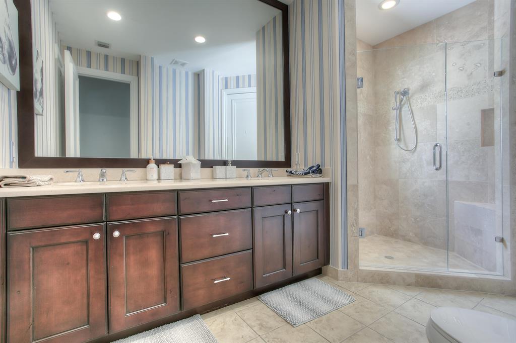 Remodeled home in The Oaks at Boca Raton, includes: new, customized kitchen with the high grade cabinets and neolith countertops; 5 bedrooms each with private baths plus a powder room; custom office with built-ins; home theater seats 8 plus bar seating; heated pool-spa; all designer window treatments and fixtures; Jerusalem stone and real wood floors; windows and doors all impact glass, outdoor kitchen. Over $500,000 in upgrades. The Oaks, a non-equity high-end community with newly renovated club house, restaurant, and first-class fitness center.It features an incomparable tennis program and gorgeous pool area. This spectacular home is move-in ready & comes fully furnished.