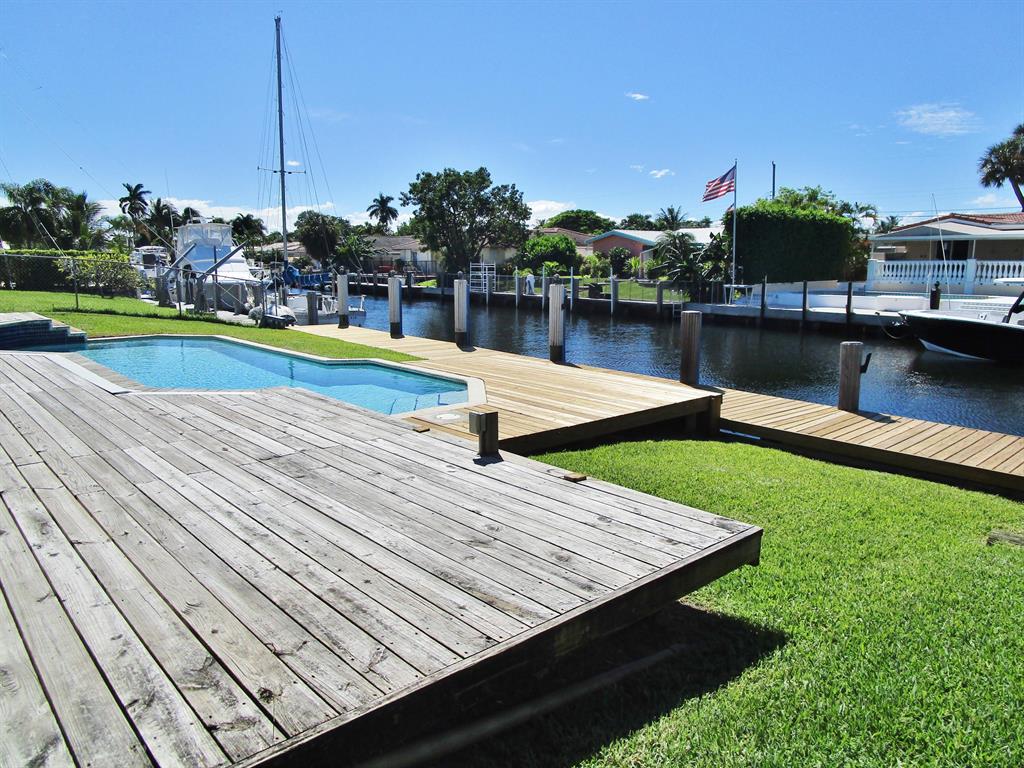 Beautiful deep waterfront property with no fixed bridges and 10 minutes to the ocean. This 3 bedroom/2 bath property is perfect for boaters with a 70 ft dock and close to a great boat ramp on a quiet cul-de-sac. Plenty of parking in the circular driveway for the boat and trailer. This property has a family room with breakfast area and the kitchen opens to nice view of backyard and water. Large backyard with a volleyball pool is great for children and pets. Close to shopping, golf, restaurants and the Pompano Beach pier and retail area. Nice, bright living area is tiled and larger than expected. Come see this gem today!