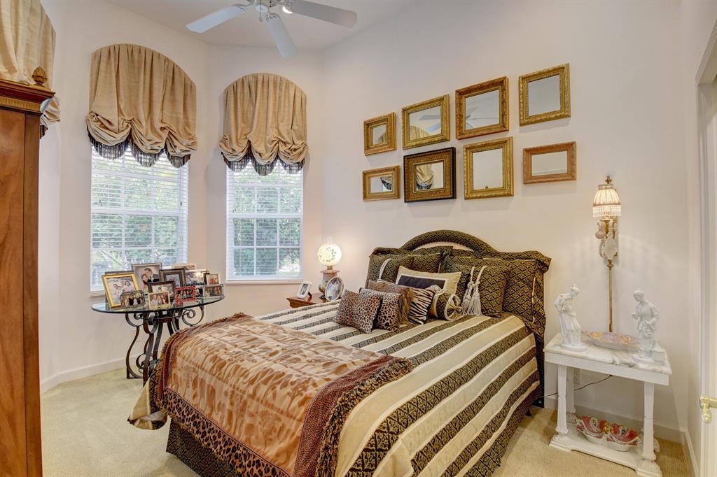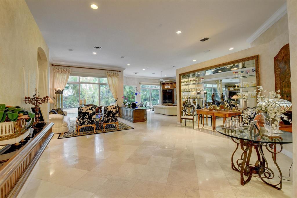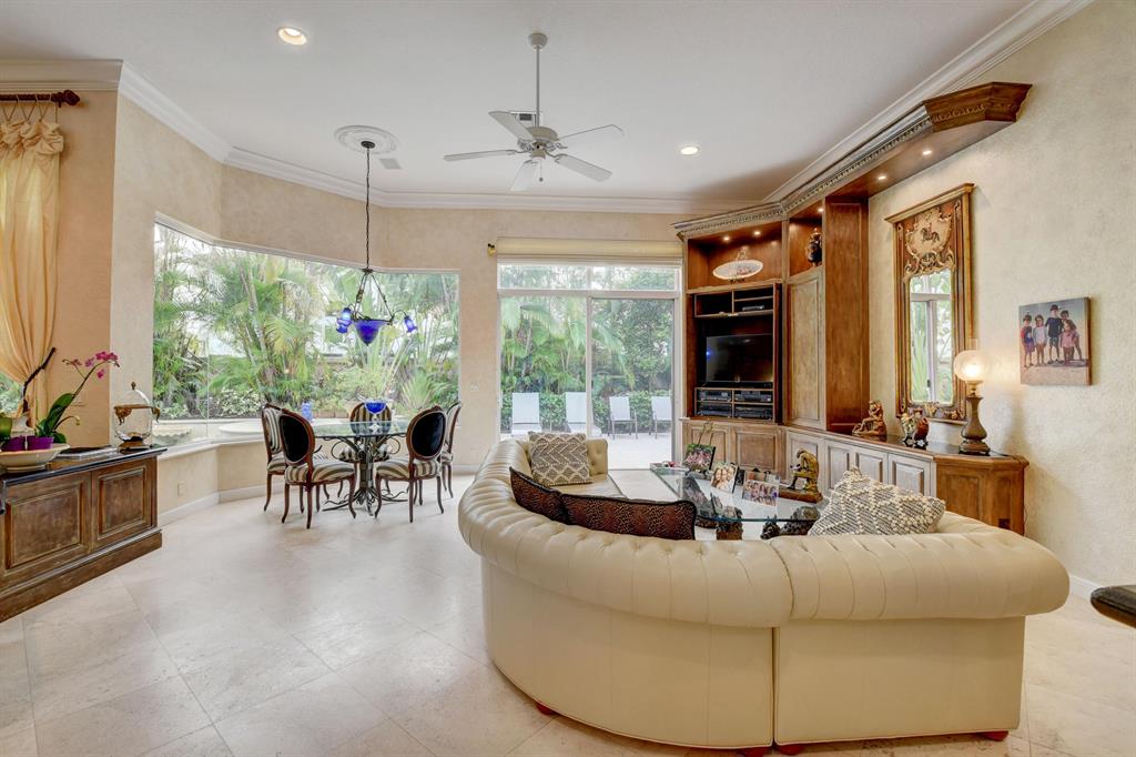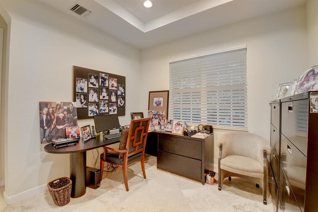 Enjoy total privacy in this spacious & open tastefully appointed one-story home of 5 bedrooms, 3 1/2 baths & a bonus area in the guest wing addition. This beautiful home features volume ceilings with crown moldings; Saturnia marble floors & neutral carpet; an open kitchen with 42'' white cabinetry, white quartz counters & backsplash,stainless steel dishwasher & oven & a charming breakfast nook;a stately library with built-in desk & shelves;elegant built-ins in the Dining Room, Living Room & Family Room; remodeled Master & second bath in the main area; 2 A/C units - 2019; custom window treatments & wood blinds; custom closet design; a full-home generator & more! The private patio offers an oversized pool with decorative fountains & extensive landscape design--beautiful entertaining space