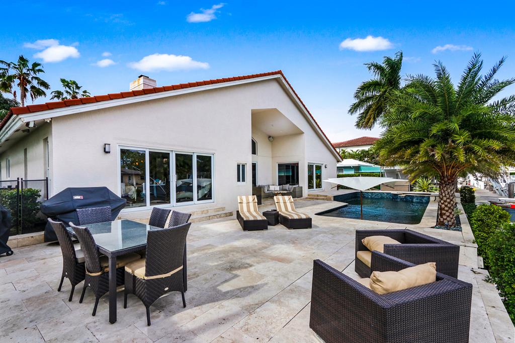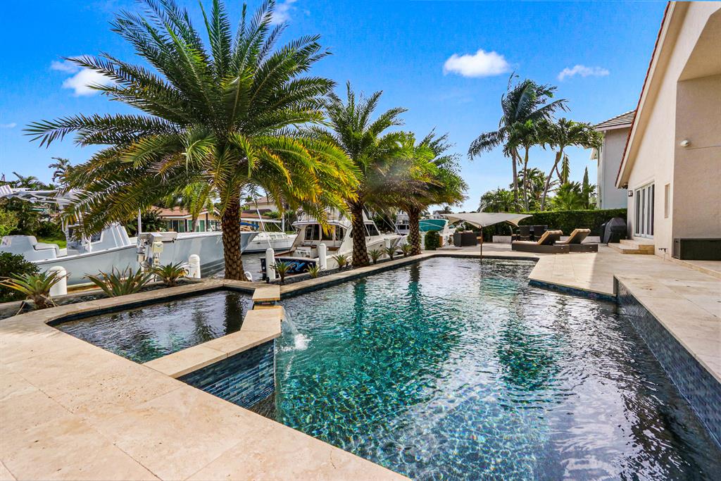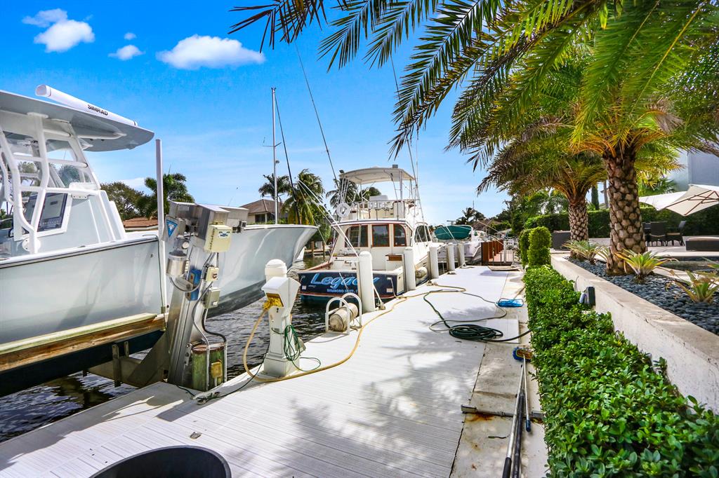 Boater's Dream Home... 80 feet of waterfront on one the best canals south of the Inlet. Less than 5 minutes to ocean. This house has it all... Full Impact Windows.. whole home generator, Chef's kitchen with Viking appliances, gas range on beautiful island, double oven, Miele built-in coffee machine, Ice maker, and wine fridge. Home features smart technology with Sonos controlled speakers throughout house and outdoor for great entertaining. Nest thermostats, security system, and Pentair smart pool all controlled from your phone. Backyard paradise includes 80 ft dock with 50 amp service and water. Heated pool with built-in spa. Seller ran water, gas, and electric for outdoor kitchen on east side of pool. Pool was resurfaced 2 years ago with pebbletec technology and new travertine.
