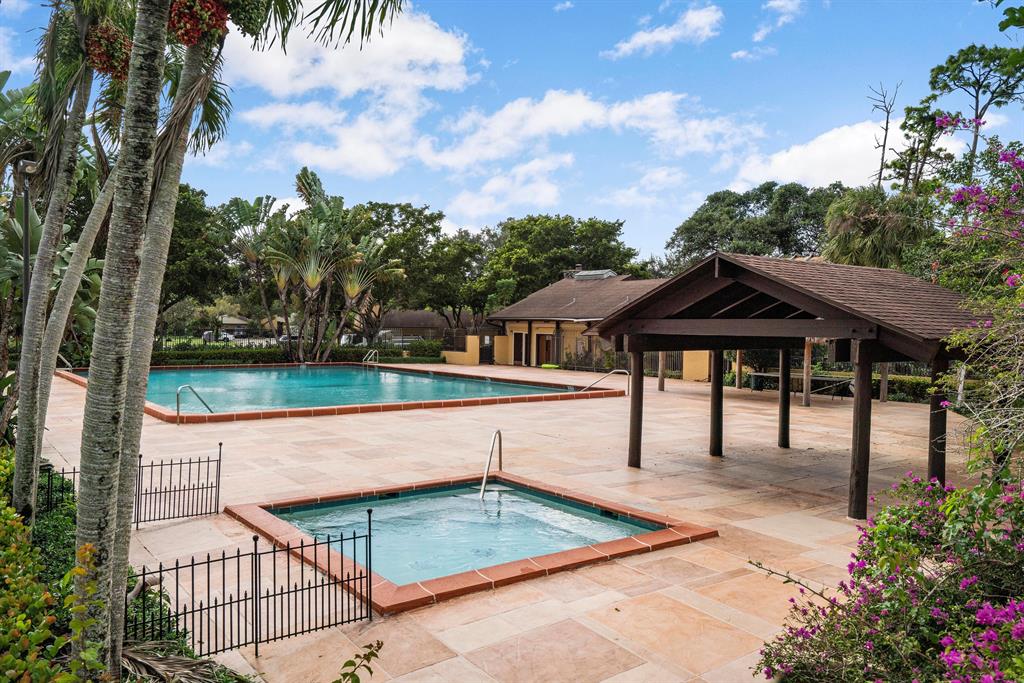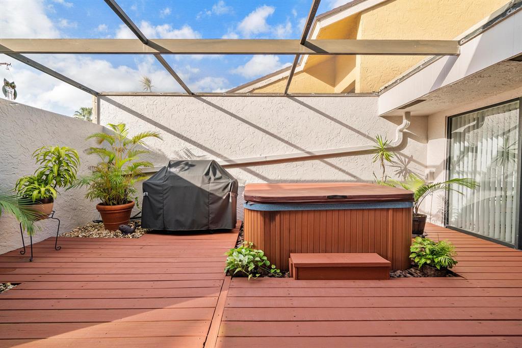 West Boca Raton Townhome in all-age 'Timberwalk' of Logger's Run. Featuring beautiful waterproof vinyl plank flooring, High cathedral ceilings, recessed lighting, 3 sky lights, a surround sound system, 2 Spacious Bedrooms, bright and updated Kitchen cabinets, countertops and Appliances, 2 sparkling clean and sleek bathrooms, Wet bar area, and phenomenal Bonus outdoor living space; which is totally screened in. The front patio area also includes the Hot tub, BBQ Grill, Outdoor Dining set and Flat Screen TV with Sound-bar, plus ceiling fans & sunshade. Great local schools, parks, shopping and restaurants make this home an excellent choice for any financing Buyers, while rates are still so Low. 1 Year Buyer's Protection Warranty Included from Cinch Home Services.