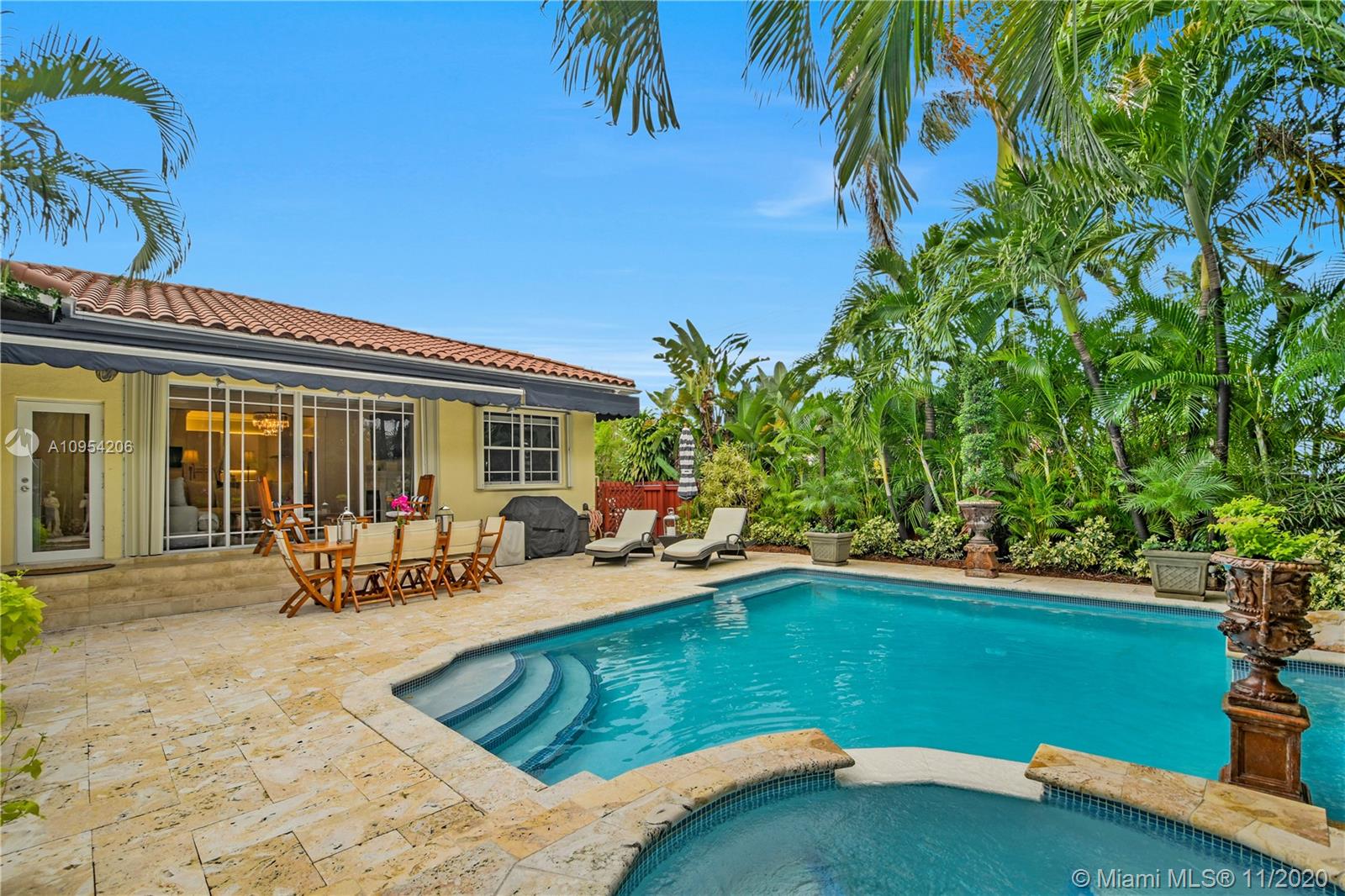 A neighborhood-defining property, this elegant, three-bedroom, two-bath Hollywood home has been fully remodeled for the modern lifestyle. An entry motor court leads to the abundantly lit, open-plan interiors showcasing sophisticated living, dining and family rooms and a brand new kitchen with Samsung appliances. Interiors segue to the resort-style, entertainer’s backyard, featuring expansive terraces, heated waterfall pool, cascading spa and modern gazebo lounge, surrounded by tall palms and meticulous landscaping. Three bedrooms include the spacious primary suite with soaking tub and dual vanities. Features include an in-home gym, exquisite finishes, a new water heater, sprinkler system and well to reduce water costs. A private, tropical retreat, located moments from world-class shopping.