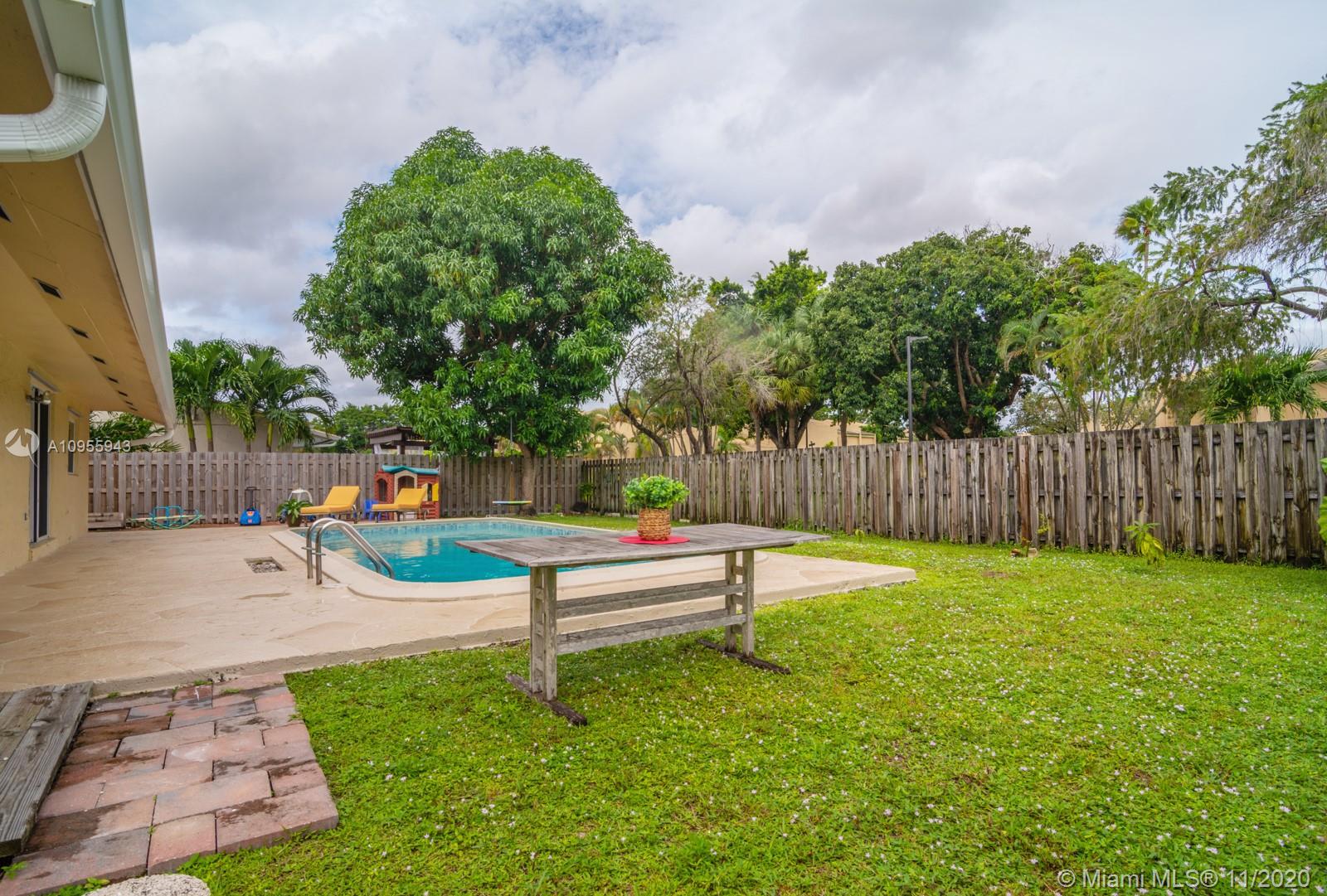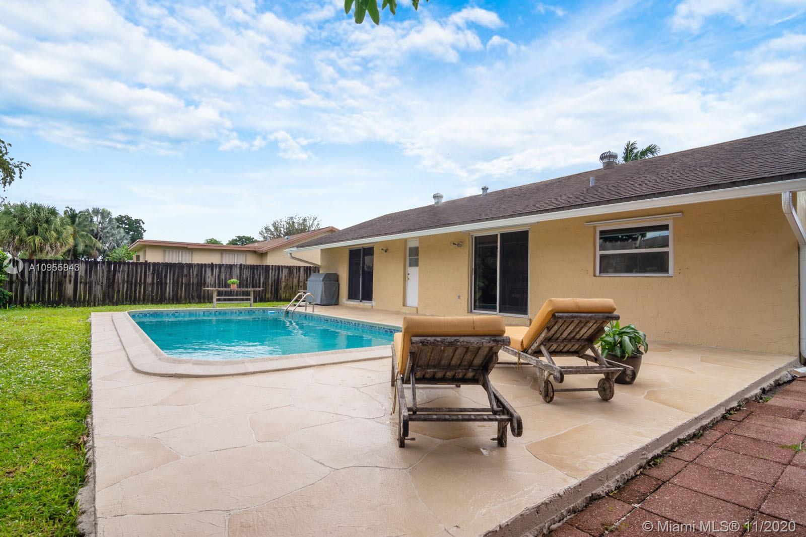 WELCOME HOME to this charming 3b/2b in central Pembroke Pines. BRAND NEW tastefully renovated kitchen in modern style with stainless steel Samsung appliances and granite counters. Floor length windows and vaulted ceilings create spacious main living area with flowing natural light. Primary bedroom with views to pool and back patio. BRAND NEW white vanity in primary bathroom and remodeled second bathroom. Converted garage serves as additional air-conditioned room perfect for office or anything you can imagine! Can be converted back to functional garage. BRAND NEW stamped concrete pool deck surrounded by fenced yard great to relax and entertain. BRAND NEW pool pump. Hurricane panels for doors and windows. Beautiful mango tree in back yard and convienent storage shed on side of house! No HOA!
