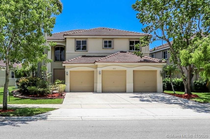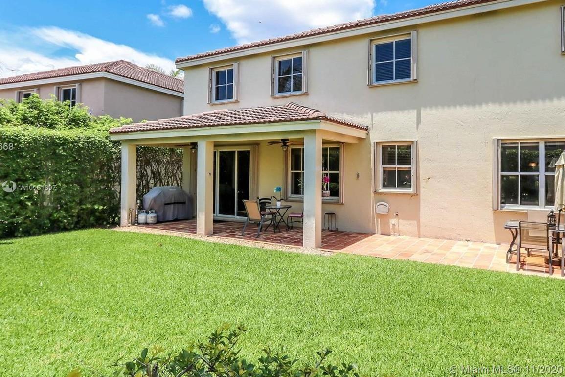 Beautiful two story with 5 bedroom PLUS den/sitting room off the master bedroom suite with four full bathrooms. One bedroom and full bathroom downstairs. Tile Throughout the first floor and Real wood upstairs. Remodeled Kitchen with Granite counter tops and Stainless Steel Appliances. Ample private fenced patio, Covered Terrace with space for a grill. Accordion Shutters throughout and Room for a pool. Magnificent Club House including Community Pool. A plus Schools.