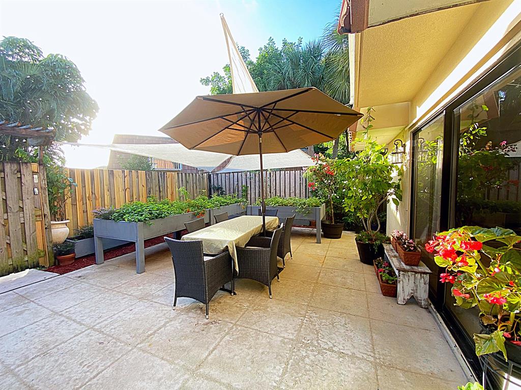Light & bright 2/2.1 renovated townhouse boasting large open modern farmhouse kitchen with white shaker cabinets, state of the art Samsung stainless steel appliances, quartz countertops, solid bamboo hardwood floors downstairs, granite staircase, marble in bathrooms walls & floors, no popcorn ceilings! A/C and water tank replaced in 2015. Sale can include organic raised gardening beds with automatic drip watering system on a timer, currently growing organic sweet potatoes but with plenty of space to grow a variety of foods for the entire family! Water is included in HOA fees. One of the only homes in Waterside that comes with hurricane shutters! Peaceful views with some water views from master bedroom and landscape views from second bedroom. Furniture negotiable in addition to...