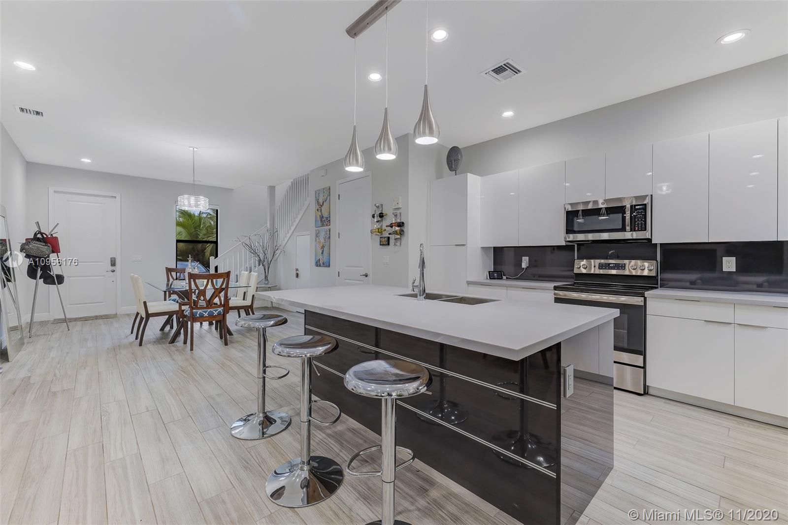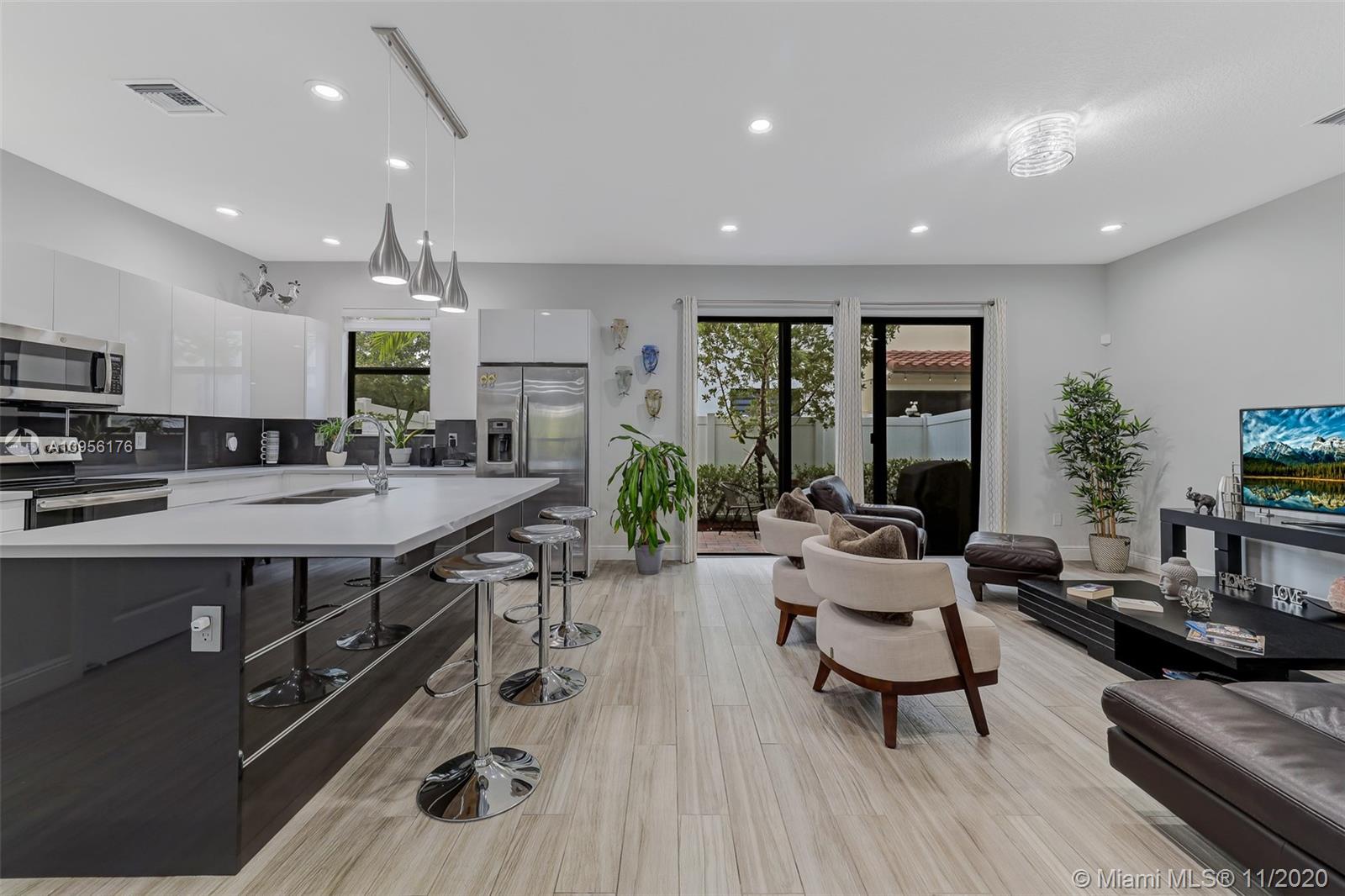 Luxurious Townhome 3 Bedrooms, 2 1/2 Baths, Rose model in West Pembroke Pines, Corner Unit at the end of a dead end street, Impact windows and doors, Wood tile floors, Upgraded wood cabinets with Marble counters, Private fenced in yard, storage under the stairs, Wood flooring on stairs and second floor, laundry up stairs with cabinets, custom closets in Master Bedroom, Smart Home Ready, energy efficient appliances, top of the line finishes.