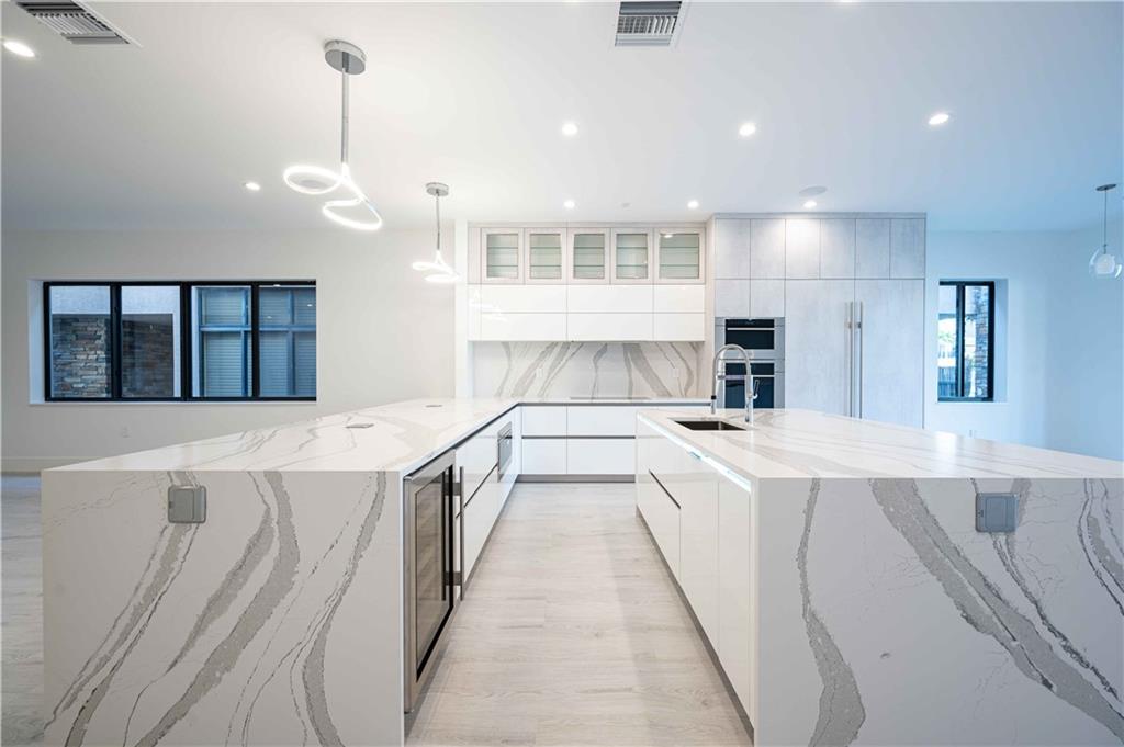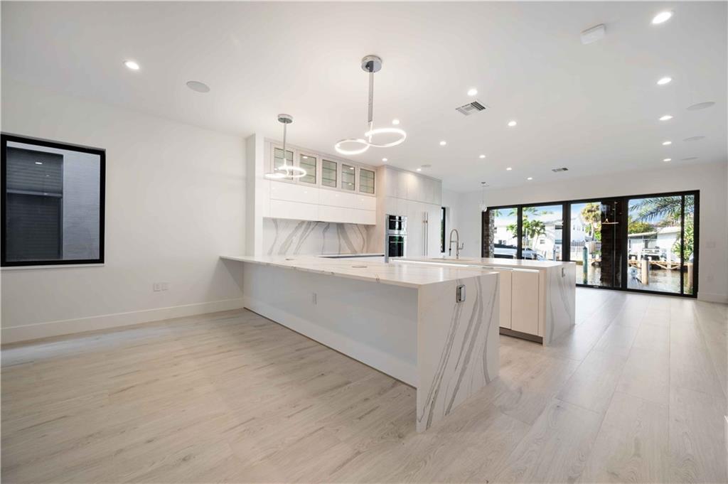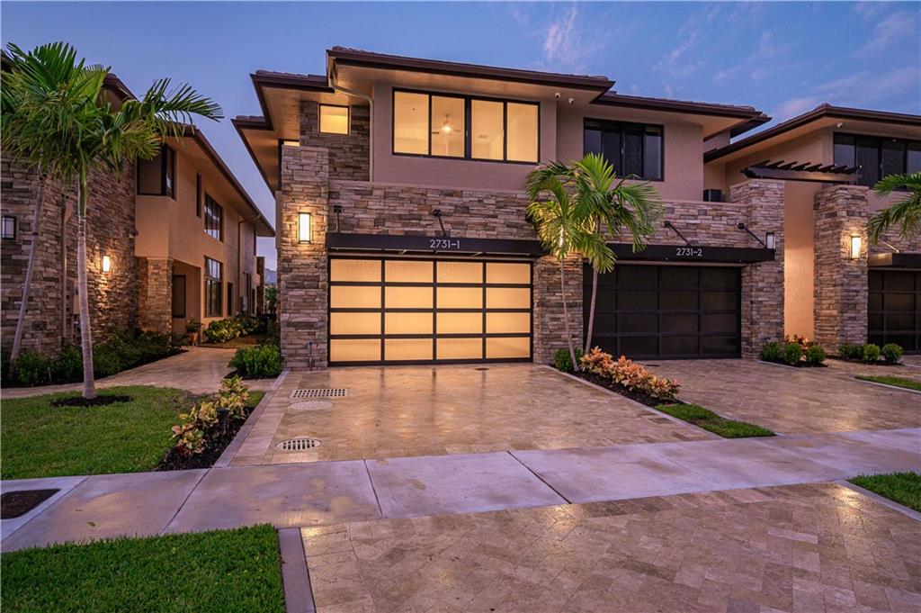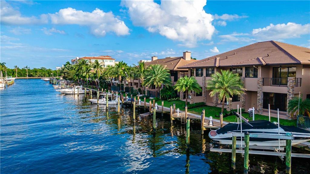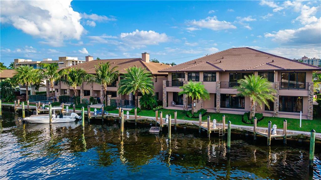 Easy to take care of yet independent NEW Construction waterfront 2-level townhome with private dock for 42' craft, elevator and 2-bay garage with glass door. Corner home with bright sun-lit interiors with high ceilings and walls of sliding doors and windows on three sides. Modern interior has two living areas, porcelain floors, custom cabinets and a wall length buffet, wet bar and media center. The kitchen features seating at both a breakfast bar and the center island. Also Wolf, Bosch and Sub Zero appliances. The second floor landing has a morning bar with sink and fridge. Each bedroom has a bath and generous closet. The Primary bedroom has private balcony and luxury spa bath. Smart home ready with speaker system. Pool ready with pilings already in place. UNDER CONTRACT BUT WE HAVE OTHERS