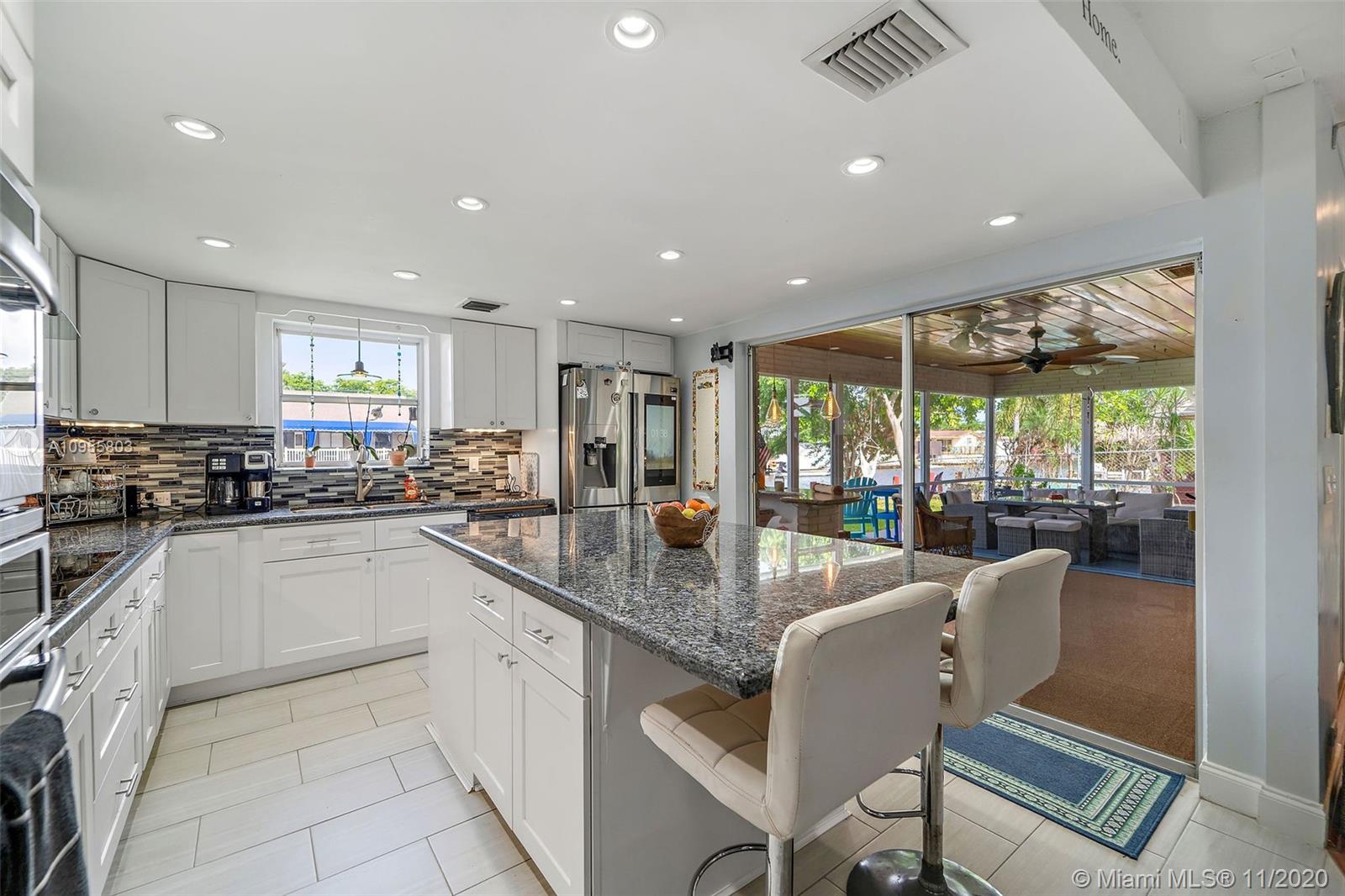 Rare Waterfront Home perfect for those who love to entertain. Upon entering you will be met with sweeping views of the waterway. Home boasts Chef's kitchen with center isle, stainless appliances w/ an abundance of wood cabinetry. Sliders lead to a generous screened-in lanai perfect for gatherings. All bedrooms are generous in nature, with large closets. Brand New Energy Efficient Roof, Updated Electrical, Composit Dock, Room for a Pool. New Shed, Hurricane Shutters, nestled on a dead-end street with easy access to 95. Ocean access under fixed bridges.