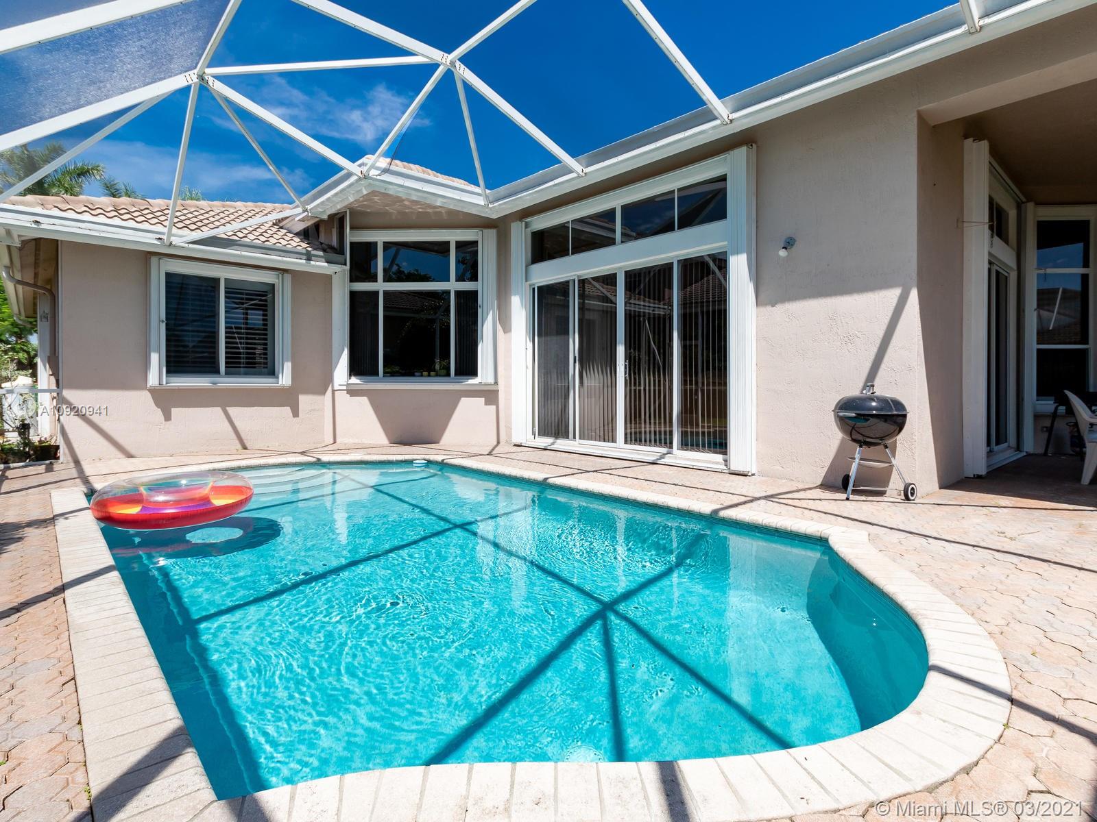 Beautiful screened-in pool home with split floor plan in prestigious Mariners Cove. Double door entrance to enormous master wing, generous master bath with double vanity, shower and tub. Other features are accordion shutters for hurricane protection, Plantation window treatments in all bedrooms, 8’-9’ ceilings and oversize 2 car garage with storage capacity. Kitchen boasts Silas tone counter top, wood cabinetry, stainless steel appliances (including new E-Range), makes for a great culinary experience. Double doors take you to the second wing of this huge home, featuring 3 bedrooms freshly painted, with new floors and boasts it’s own den or homework room. Screened in patio help to create a South Florida tropical oasis. Gated, close to Sawgrass Expressway, dining and entertainment close by!