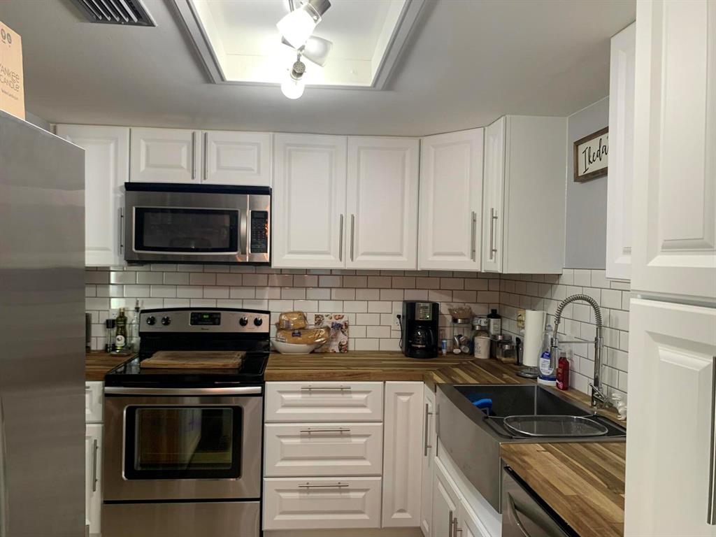BEAUTIFUL FENCED PRIVATE LARGE YARD, HURRICANE WINDOWS AND SLIDERS, SKYLIGHT, 2 bedroom, 2.5 baths, 1460 sq. ft. townhouse, first home; winter escape or investment property, Updated Kitchen, stainless steel , butcher block countertops, farmhouse sink, updated bathrooms, laminate flooring, LARGE PETS Allowed, new sod , new sprinklers, gated area for trash/outdoor storage, freshly painted exterior
