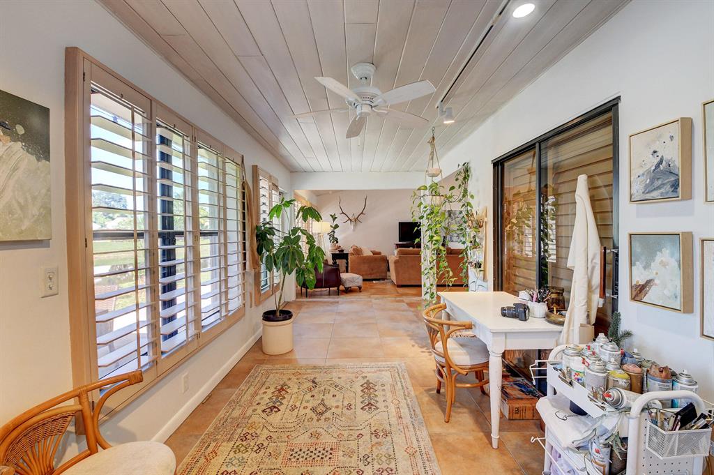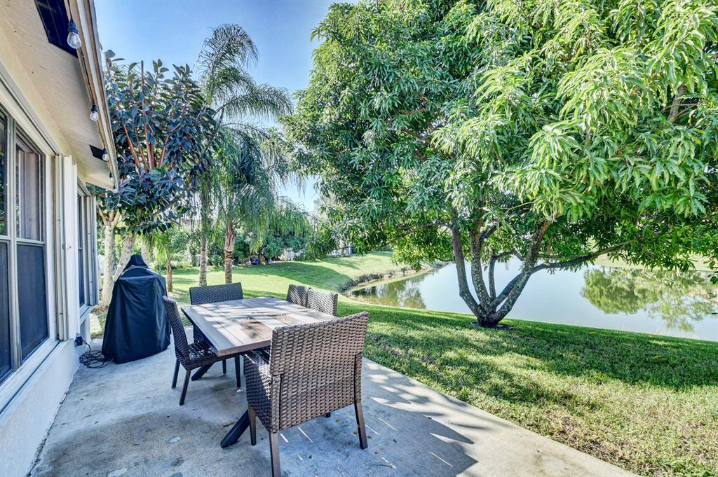 Nicely upgraded and meticulously maintained detached single family home with many upgrades and a gorgeous view of the lake in a great West Boca neighborhood. 3 bedrooms/2 baths, 24'' x 24'' earth tone porcelain tile throughout, professionally designed renovated kitchen with wood cabinets, top of the line stainless steel French door refrigerator and programmable convection & conventional Kenmore Elite chef oven with side oven broil & pan grid. Eat in area and office nook completes the kitchen. Tongue and grove cedar stained wood on all living area ceilings. Both bathrooms have been renovated, all closets have custom made shelving. Home is wired for surround sound in/out and most electronics. Exterior features concrete patio, raised bed for growing vegetables and a producing mango tree.