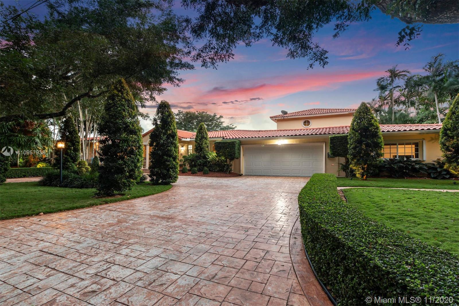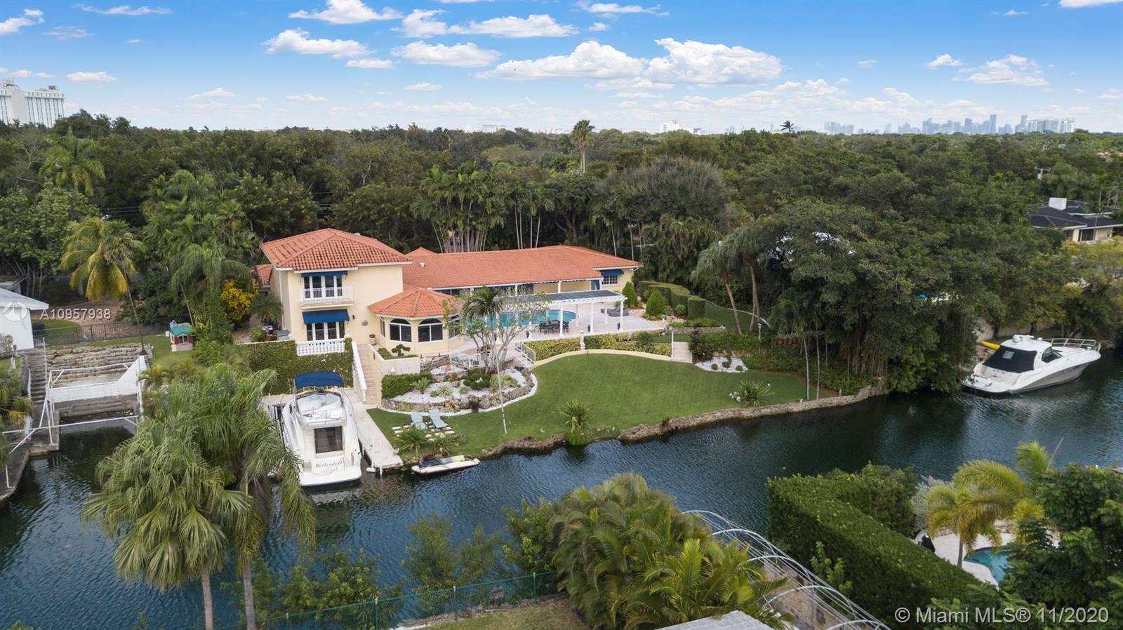 Beautiful Coral Gables estate on the prestigious Coral Gables waterway. Natural light floods this 5/5.5 home that is set up perfectly for indoor & outdoor entertaining. The oversized 22,800 sqft lot allows for the meticulously maintained gardens, 149ft of water frontage & expansive pool patio. The grandfathered coral rock cut out boat slip accommodates a 45ft, 13 beam boat. Formal living, dining room & kitchen look out to the pool & water. Separate family room with it's own additional summer kitchen, ideal for entertaining guests. Choice of two master bedroom suites, the lower level master boasts an elegant spa bathroom with pool views. The second master encompasses the whole upper floor, with a balcony looking over the canal. Desirable split bedrooms and a two car garage. Simply stunning.
