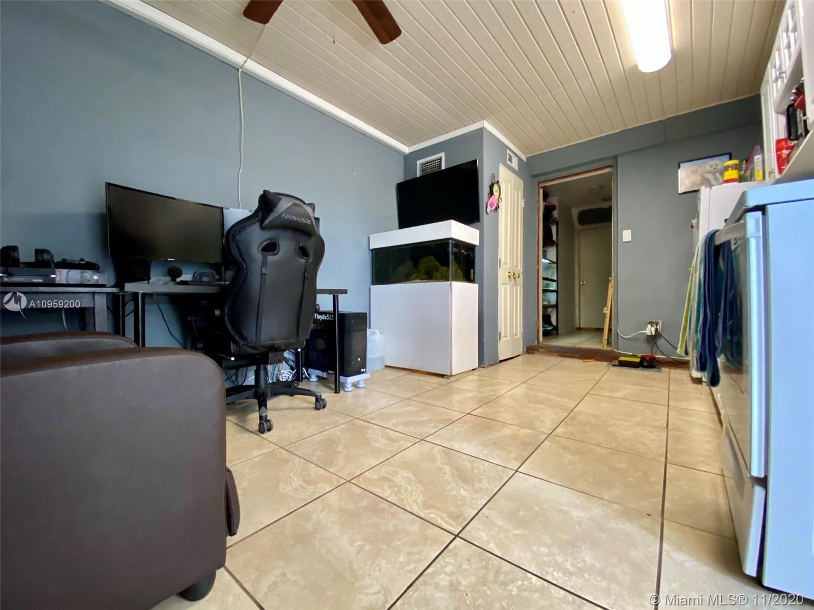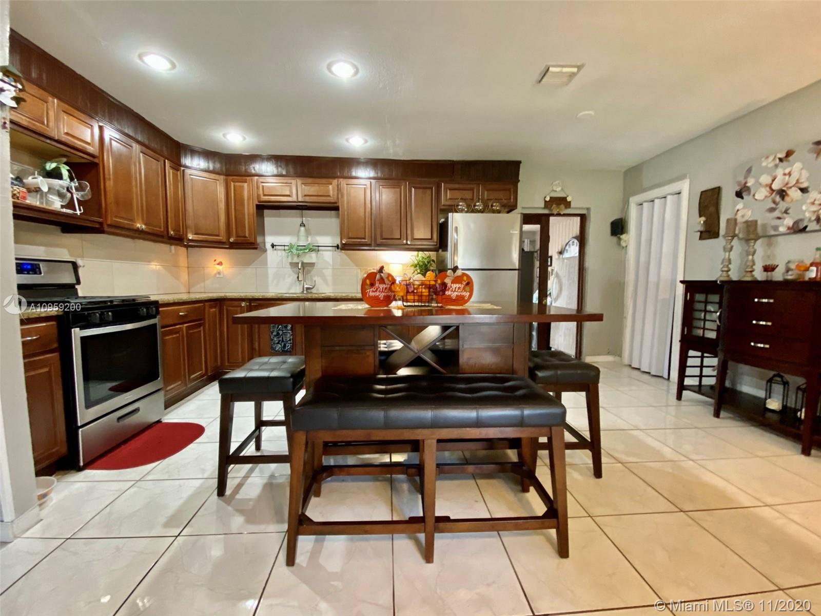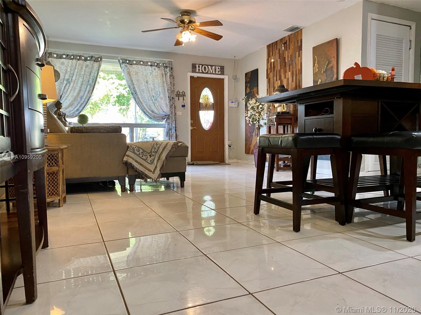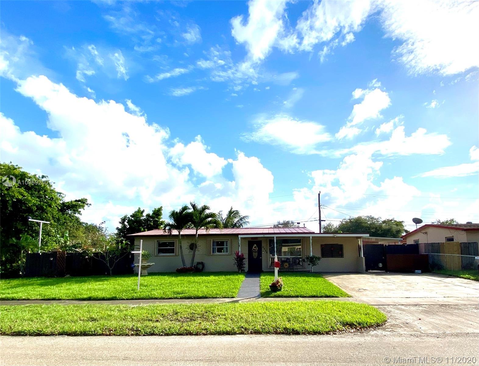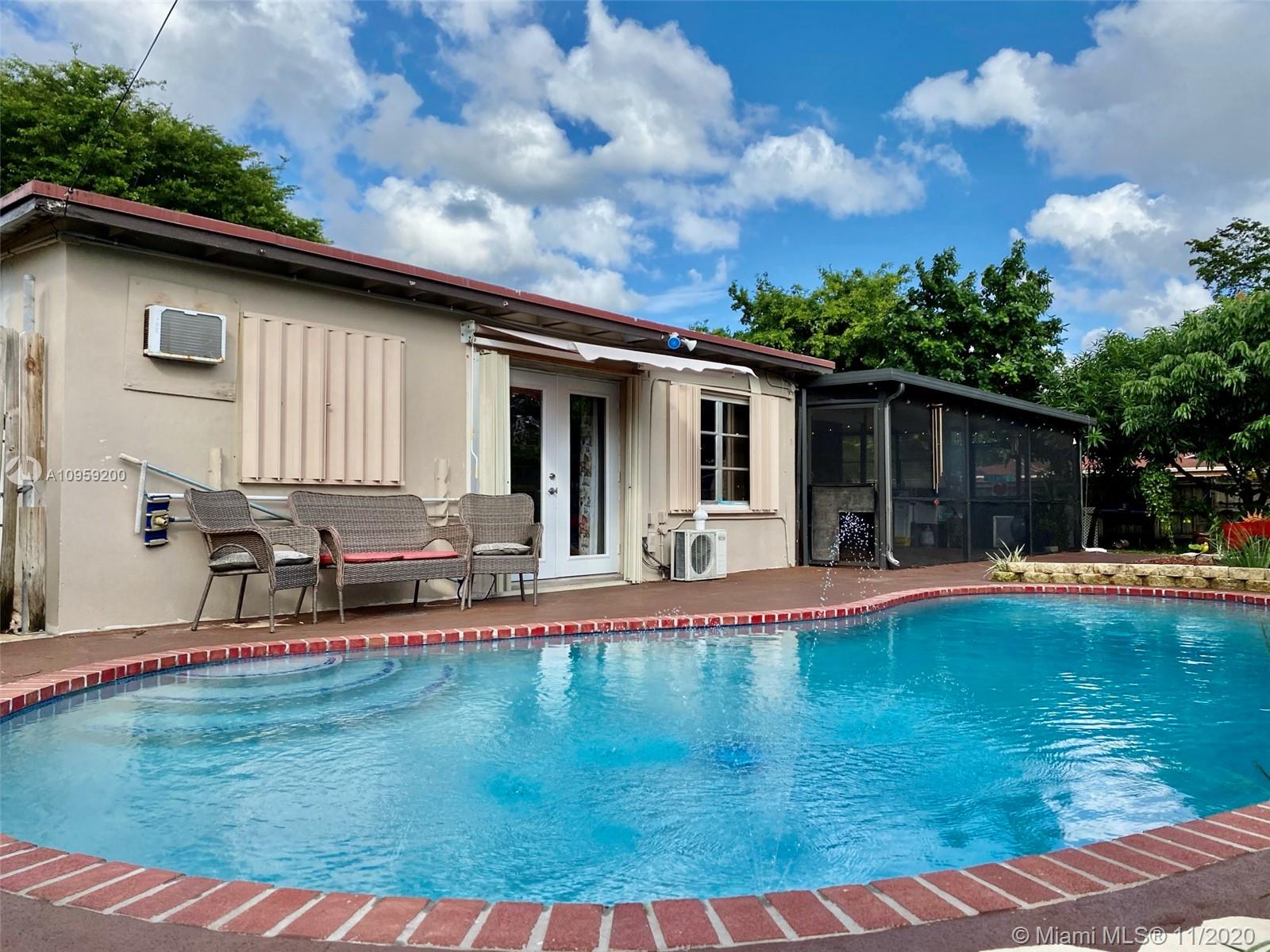 Beautiful pool home on a spacious corner lot with mature tropical trees. This property has four bedroom and three baths which includes an in law quarters with a separate entrance and covered patio. Enjoy Florida living from your spacious screened in patio (bar included), sit and relax by the pond or swim day or night in your private pool. This property features an open concept, granite counters and stainless steel appliances with gas stove, family room, light tile in main areas, metal roof, brand new AC with UV light, accordion shutters, new insulation, tankless water heater, large shed, fenced yard with side entrance, new plumbing under pool and new diamond bright, newer electrical and alarm system. Close to the turnpike, Broward College and quick drive to the beach. No association.