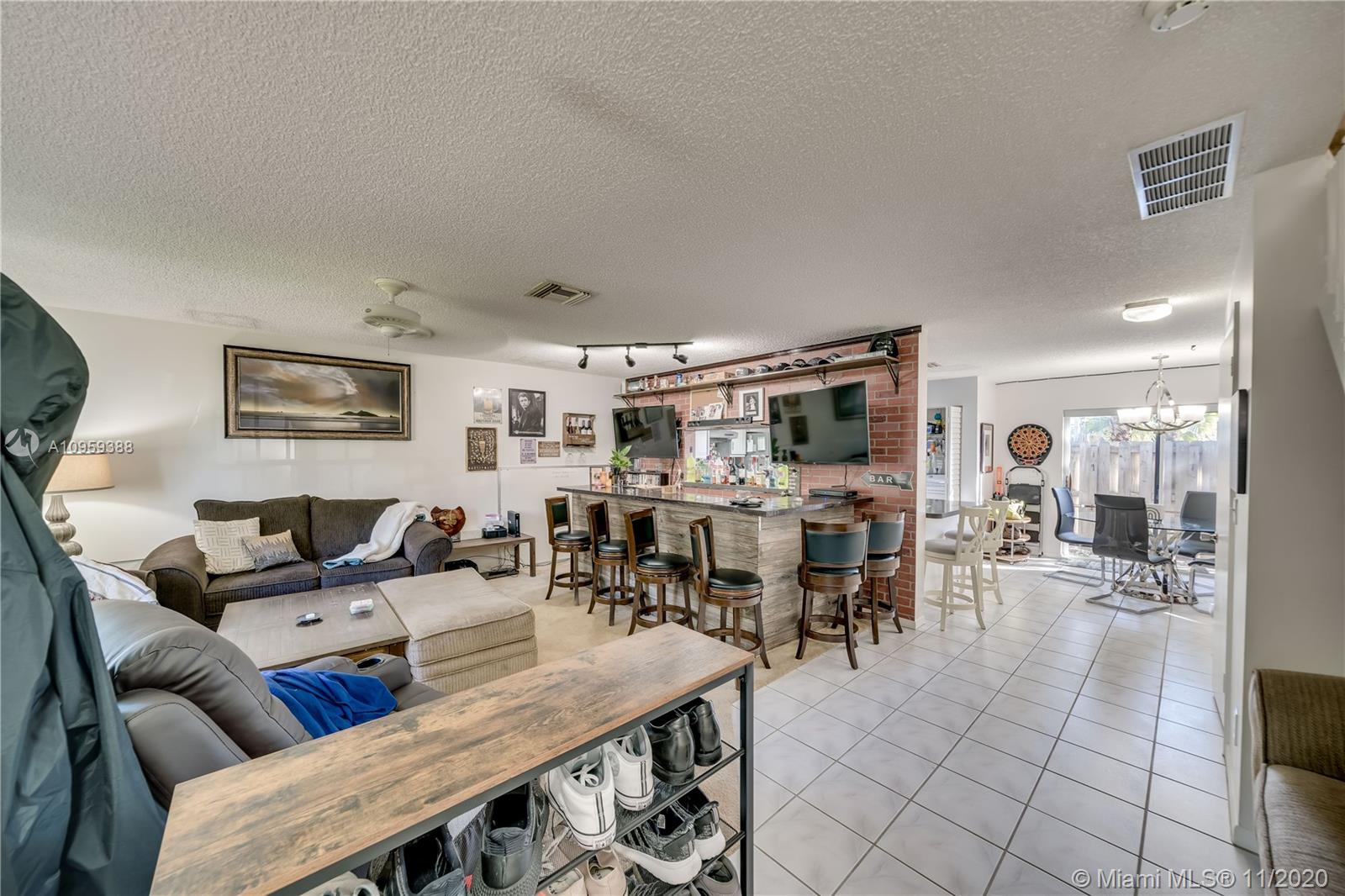 Pride in Ownership! This beautifully maintained corner home features 3 bedrooms and 2.5 bathrooms with a custom built bar area. The townhome is a corner unit but feels more like a single family home. The property features an updated kitchen and bathrooms and even a private backyard area. Complete with full hurricane protection, the property is centrally located near great shopping, dining, A rated schools and major highways. The entire property was recently re-plumbed to replace all the poly piping so insurance rates will be favorable. Home furnishings can be sold separately.