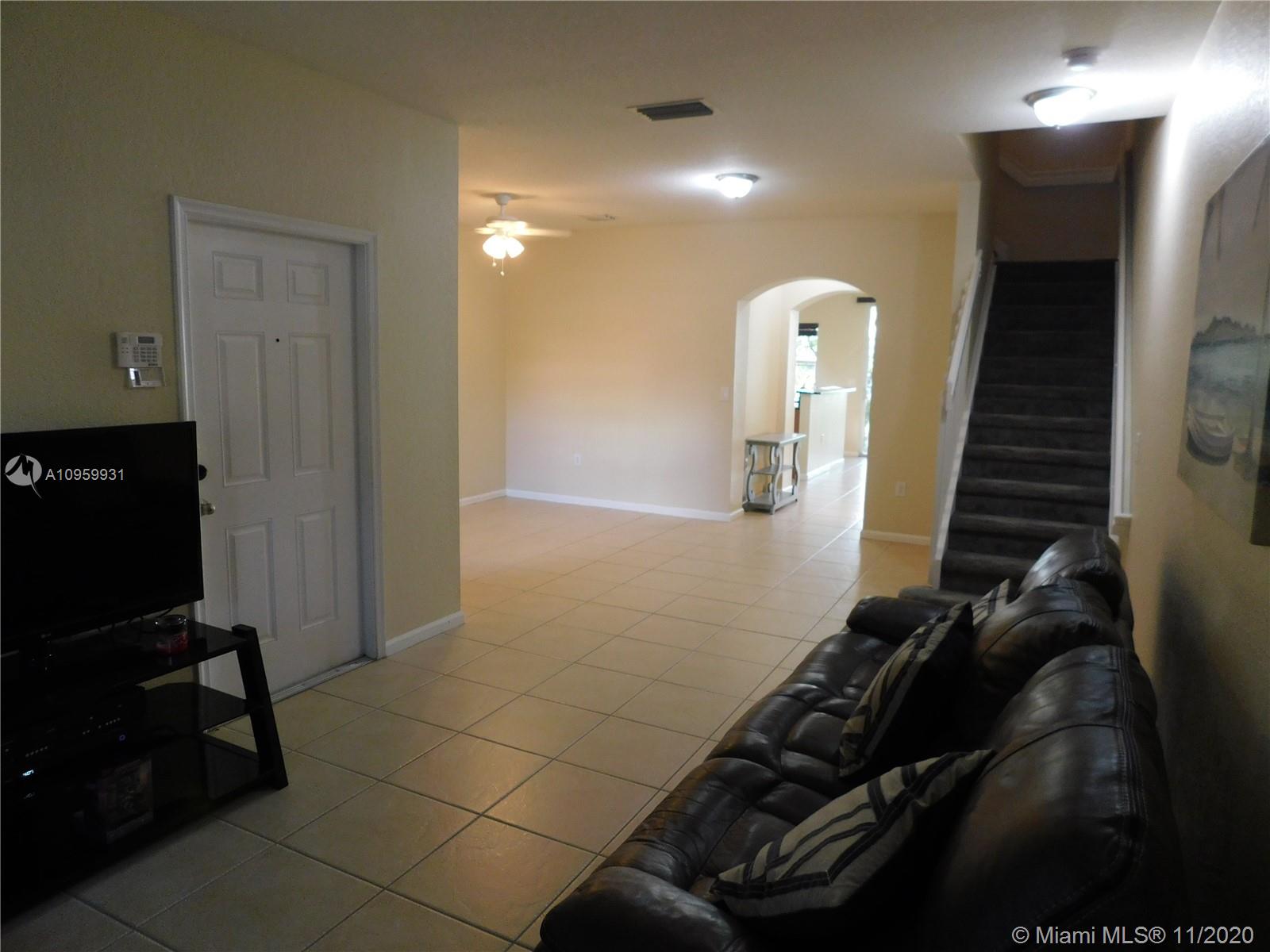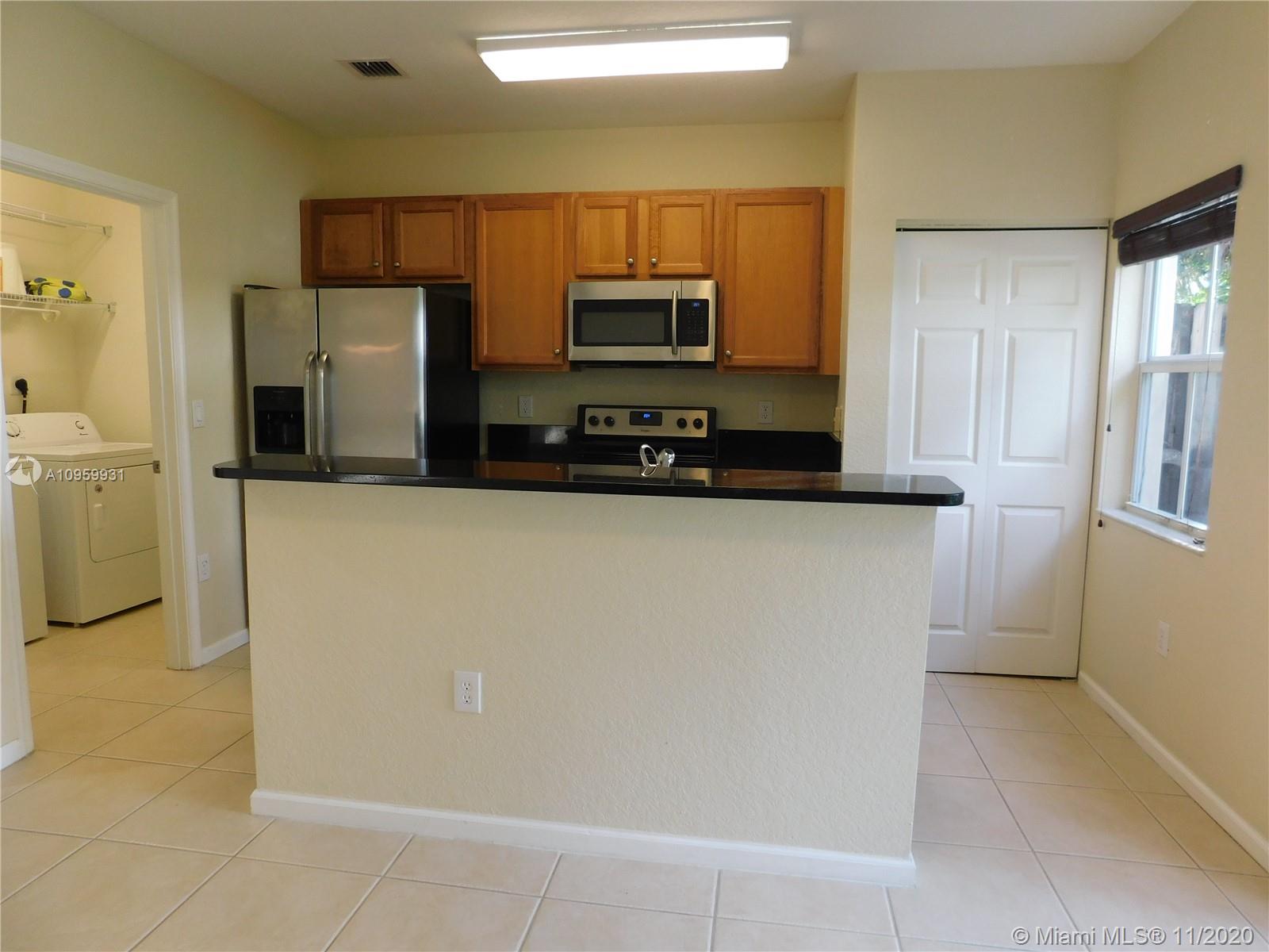 Unique and ready to move beautiful townhome in the heart of Miramar, FL. This 2 bedrooms and 2.5 bathrooms property is located in the quiet and gated community of Martinique No.2, minutes away from Miramar Square and Monarch Town Center. This property has stainless steel appliances, ceiling fans, tiles on first floor and wood floor on the two master bedrooms; both bedrooms with their own full bathrooms. First floor with half bathroom, breakfast area, dining/living room, formal dining and laundry. This property has two car spaces assigned, open porch and small patio in the back. Community offers pool and playground for children. **HOA is currently painting all buildings in the community ***