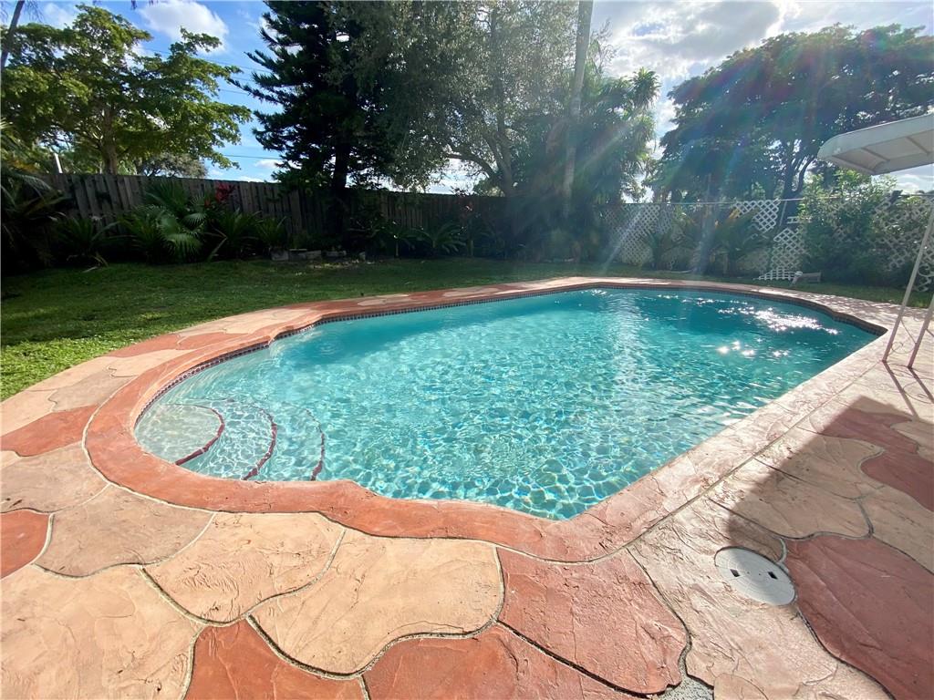 This Pool home is priced to sell! 3 bedrooms and 2 bathrooms. Third bedroom has French doors that open to the Livingroom both have a vaulted ceiling. Freshly painted interior. Double driveway and 1 car gar. Undated kitchen with Stainless appliances ,wood cabinets and granite counters. Master bedroom has vaulted ceiling an updated master bathroom and big walk in closet. Tile floors throughout, Spacious fenced yard with Euro tile deck around the pool, large enclosed patio. Low maint fee. Close to schools and easy commute location near to Nobhill Rd just off South of Commercial Blvd.