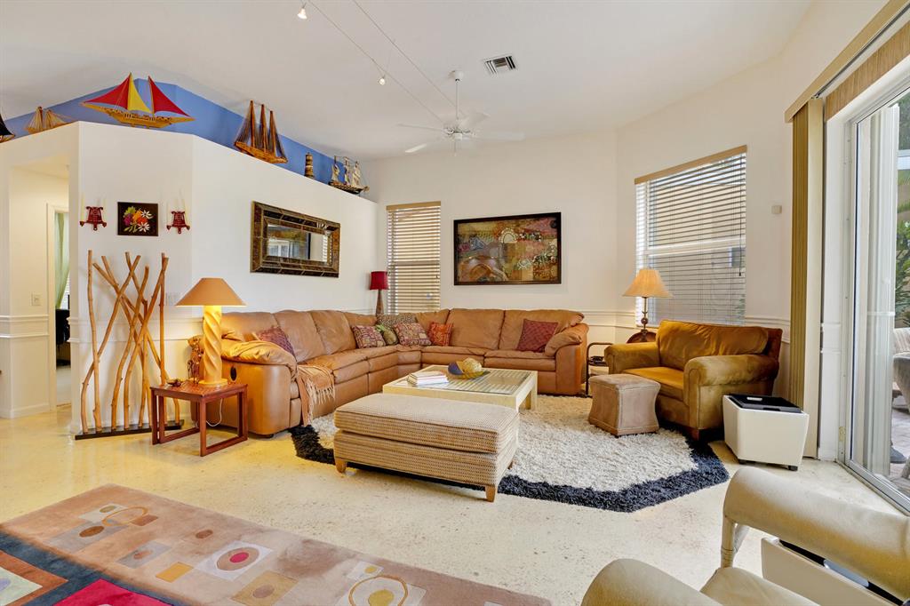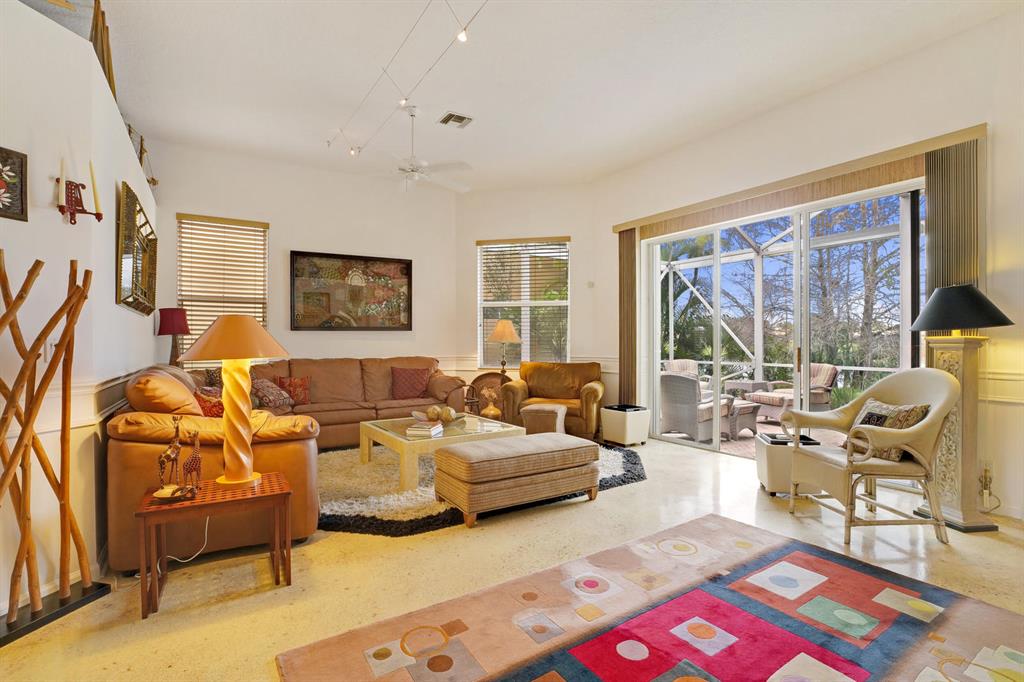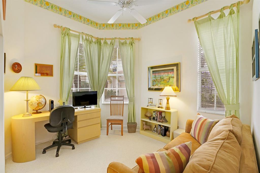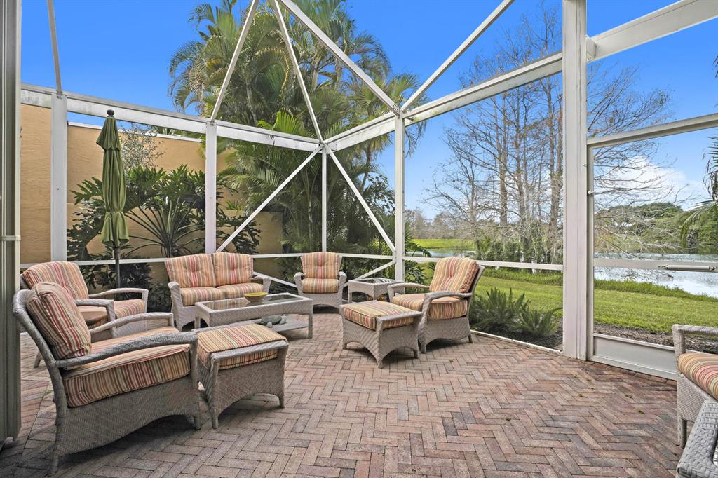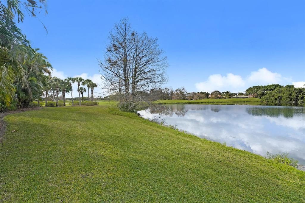 2 bedroom, 2 bath TURNKEY villa with a million dollar view. This unit has a STUNNING lake vista and overlooks the resting place for all of Ibis's birds as dusk settles in. You will not find a more amazing view in all of Ibis as the birds in flight land on the trees opposite the screened patio. Serene, verdant and truly magnificent view. This home has a new roof (2017), new accordian shutters (2018), new H2O heater (2016), new Maytag high end washer & dryer. Whimsical and very charming, with decorative, slip resistant concrete floor epoxy coating in all the common areas in neutral tones. With 10 foot high ceilings, and open floor plan, this villa will be an ideal winter get-away. Overlooking the 13th green of the Jack Nicklaus Heritage golf course at prestigious Club at Ibis. CON'T