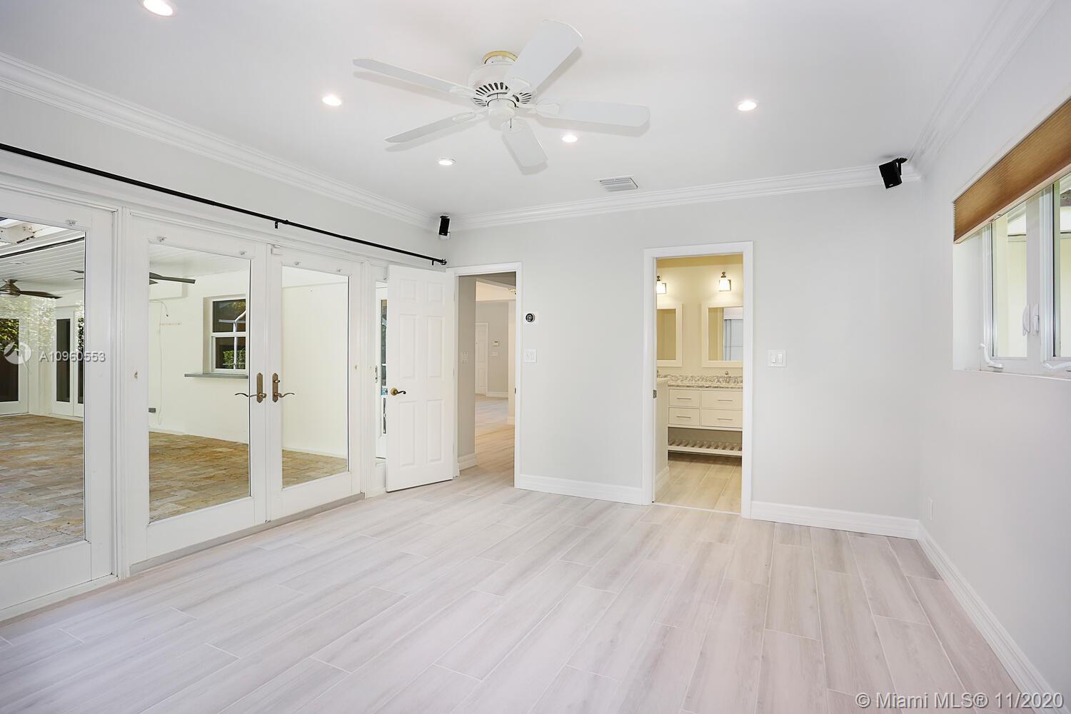 Lovely mid-century home on a quiet, tree-lined street in the coveted South Gables neighborhood known as Sunrise Point. Ideally located a short walk or bike ride to the Grove village’s galleries, boutiques, cafes and bayfront parks & marinas. Totally renovated including new roof (2017), wood-plank style porcelain tile flooring & impact glass throughout. Light-filled living spaces w/volume ceilings, crown moldings & a neutral color palette, an ideal backdrop for displaying art. Custom kitchen features wood cabinetry, stainless appliances, a center island & breakfast area. Split bedroom layout including separate master suite w/ spa-like bath that features over-sized frameless glass rain-shower. French doors throughout the home overlook a large covered terrace, pool & spa and tropical garden.