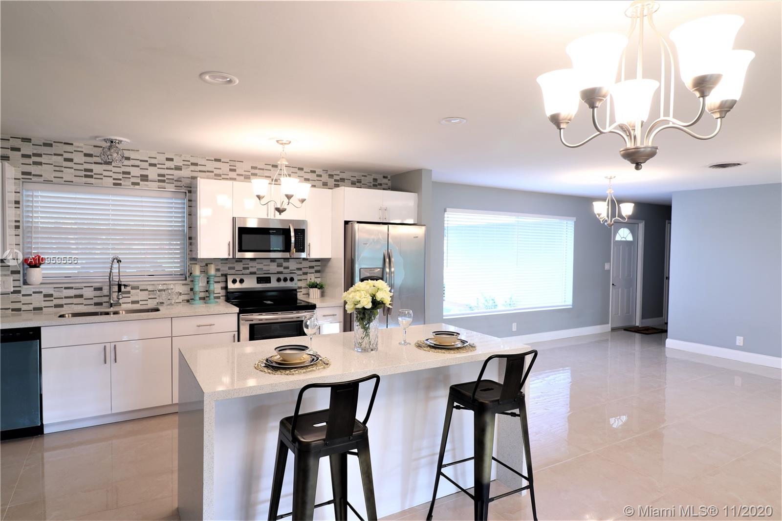 Luminous elegant single family home with 3 Bedrooms,2 Full Bath, completely remodeled from head to toe in a beautiful neighborhood.New Roof, New A/C on permit.New tile Flooring through home and Wood laminate in bedrooms.New waterline from meter through the house.New Sewer connection. New hard wood vanities w/Glass Doors in bathrooms.All doors are New.New quartz counter top on wood cabinets with New SS Appliances. New full size Washer and Dryer. New plumbing and Electrical Fixtures. New irrigation system with New piping,timer and heads. New exterior and interior electric Panel, new electric wiring almost entire of the house. New Smoke detectors.Freshly painted interior and exterior building. Centrally located in heart of Fort Lauderdale and close to highway and everything .No HOA,Must See.