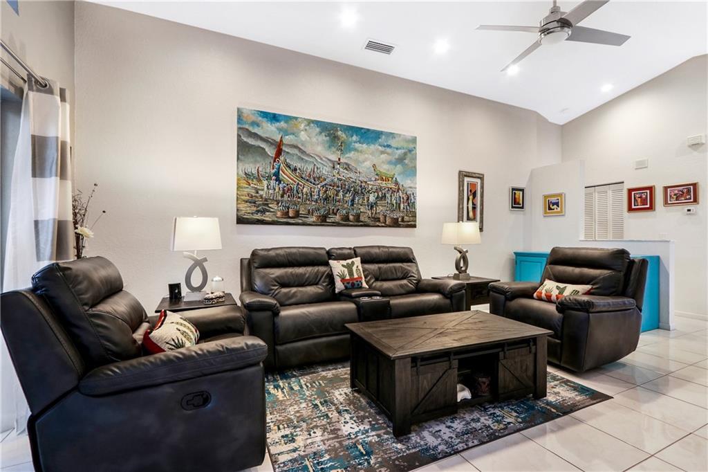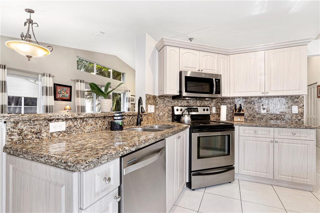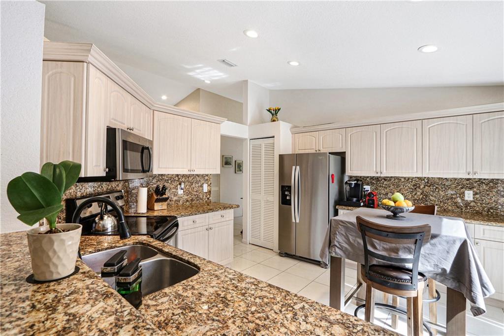 Well priced and highly desirable Alhambra model in Encino Estates at Grand Palms! This 3BR/2BA home features a new 2018 roof! The eat-in kitchen has a brand new stainless steel fridge, new appliances, refaced white kitchen cabinets (done since pictures taken), granite counters with snack bar open to dining area. No popcorn ceilings in main house! Primary bedroom has built-in closets and fully remodeled bath with oversized rain shower! Guest bath semi-remodeled as well! Feel secure during hurricane season and enjoy wind-storm discount with shutters all around and impact garage door. Too many features to list! Meticulously maintained home is truly move-in ready and won’t disappoint! HOA includes guard-gated security, community pool, lawn, & exterior paint! Schedule your appt today!