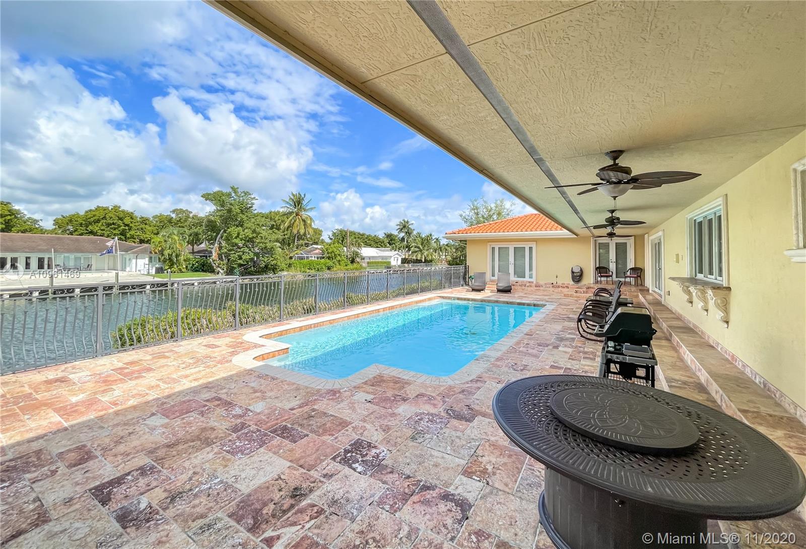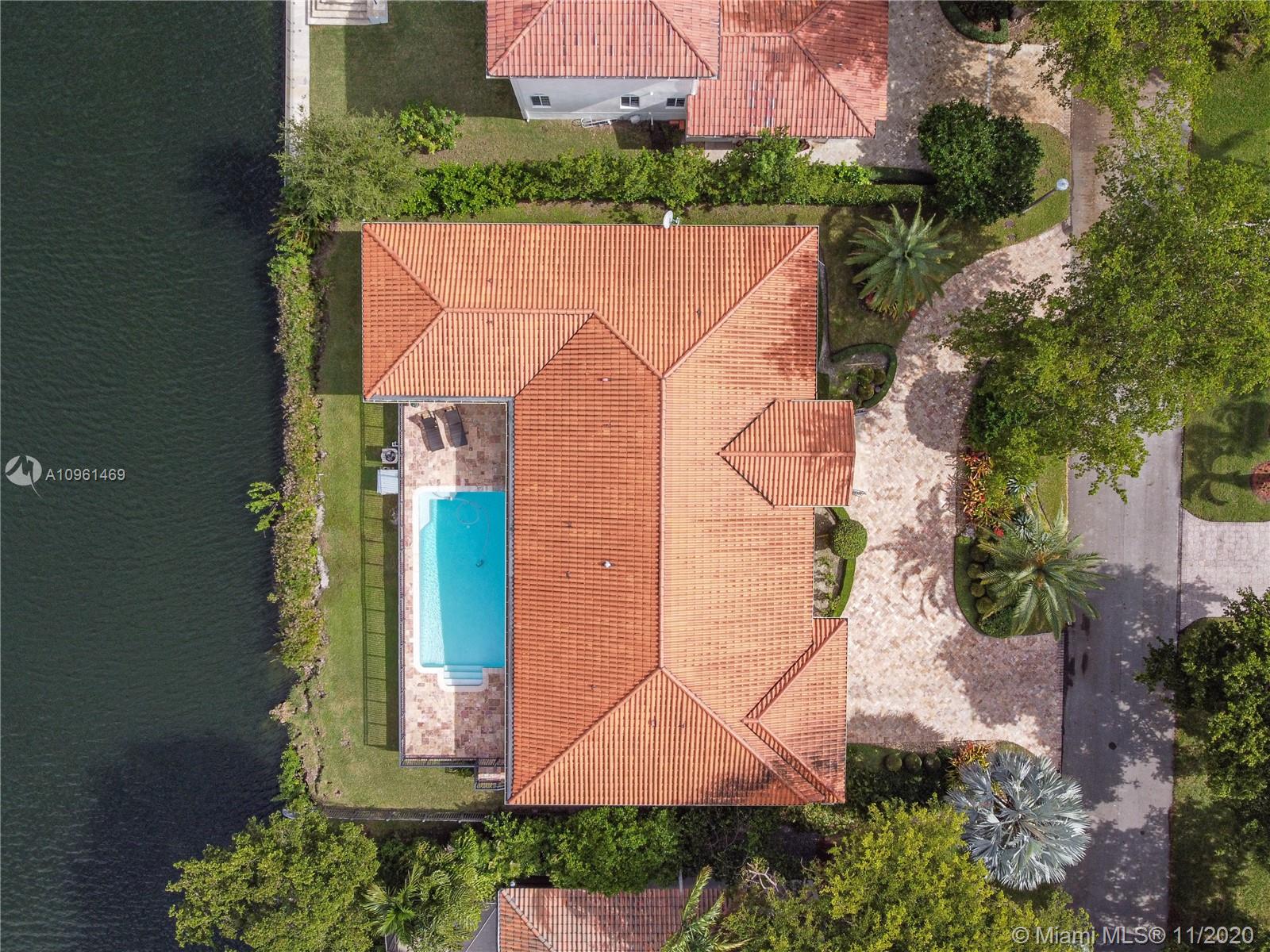 This 5 bedroom/4 bathroom home is located on a waterfront lot in the desired gated community of Gables by the Sea. This home sits on a 12,600 SF lot and boasts vaulted wood ceilings, marble floors throughout, Thermador stainless steel appliances and a spacious master bedroom with pool and water views. Additional features are solid wood doors throughout as well as impact windows/doors. One of the 5 most affordable waterfront homes in the Gables.