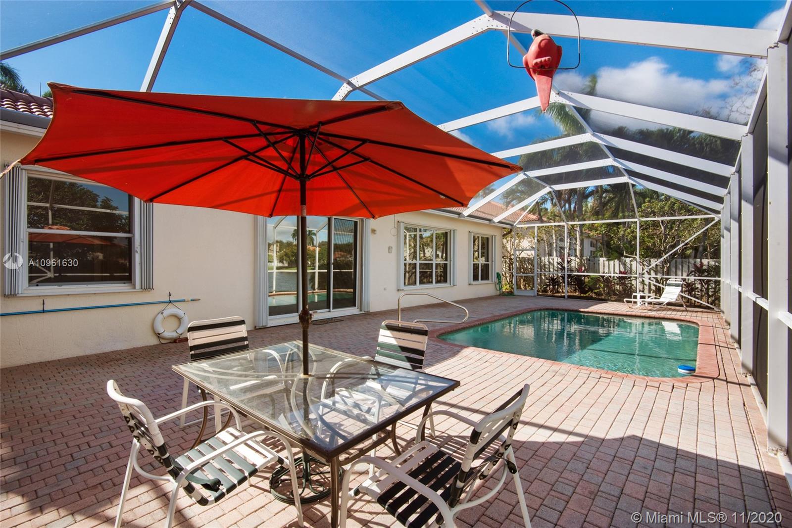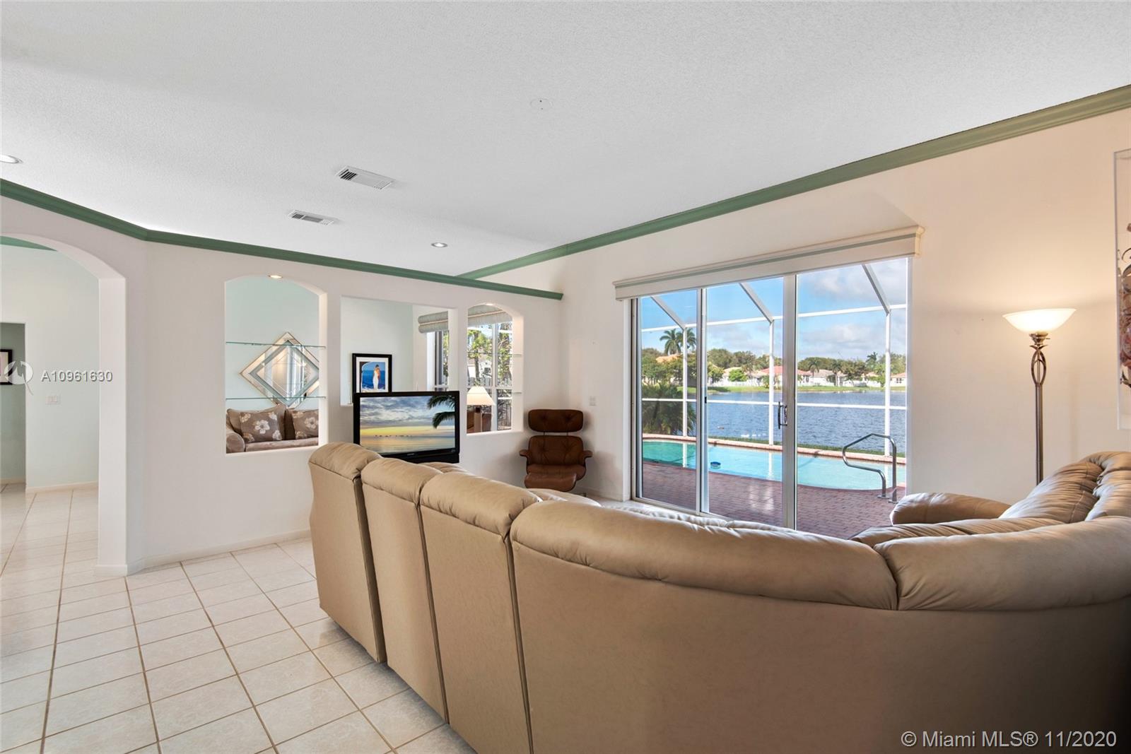 Very nice lakefront home in the community of Oakridge. This is an immaculate 3 bedroom/2 bath split floor plan pool home situated on an oversized lakefront lot. White tile throughout and carpet in the bedrooms. This home features a paved driveway, a propane gas generator and accordion hurricane shutters on all the windows. The pool area is screened in with a large paved deck area, great for gatherings and entertaining. The community amenities include playground, full court basketball and tennis courts along with a 24 hour staffed guard house.