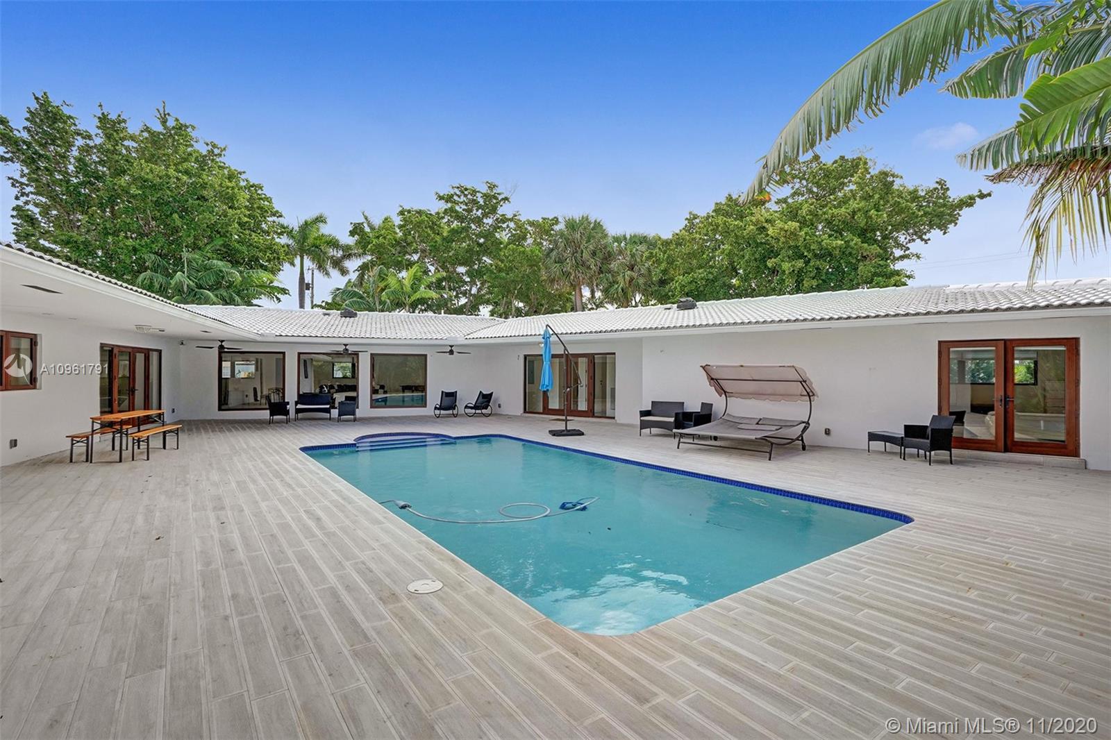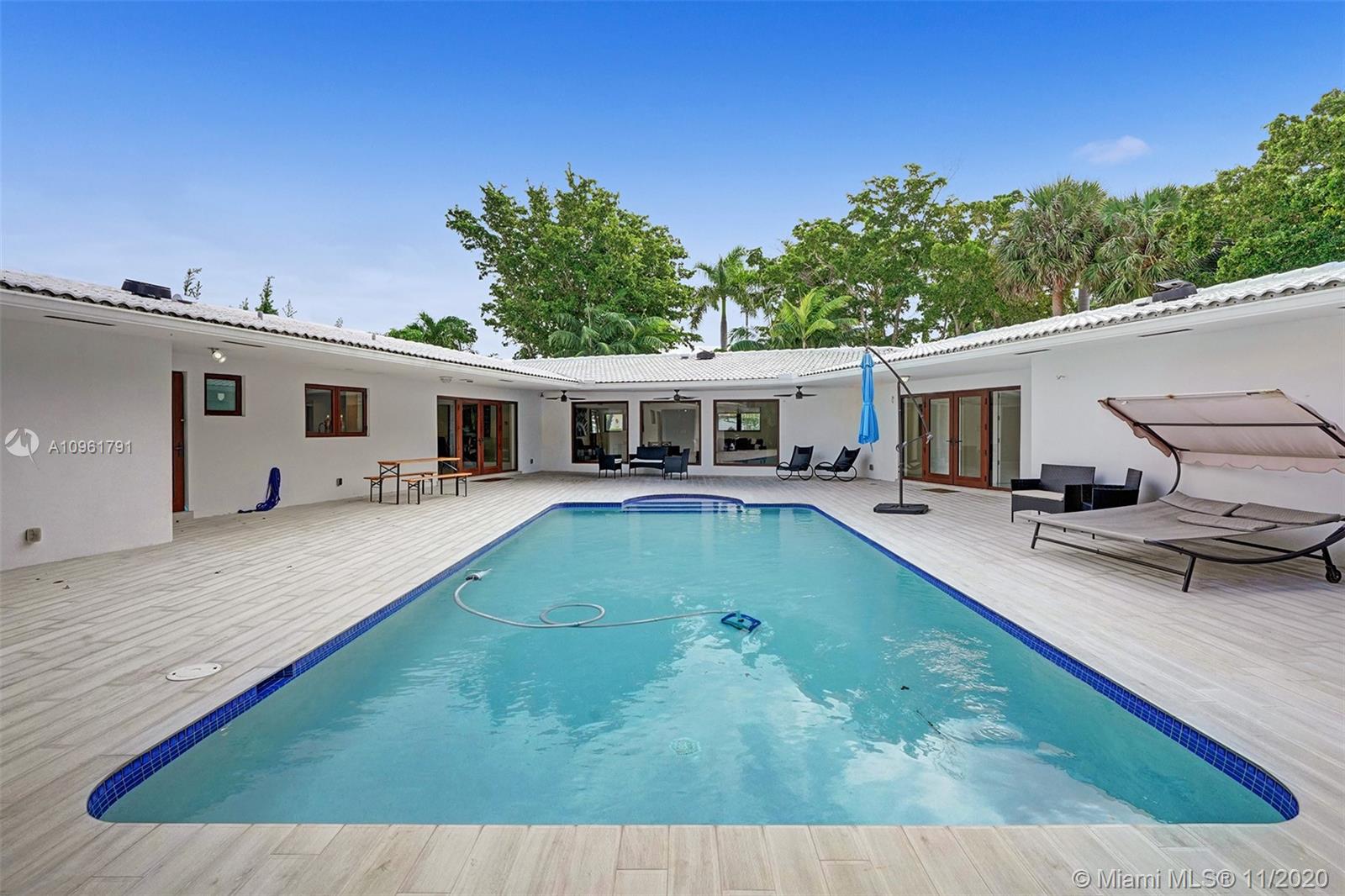 This newly renovated San Souci Estates home sits on 1/3 acre (13,683 SqFt) corner lot! Featuring a unique design built for entertaining with large open spaces surrounding a private pool courtyard as the focal point that bringis in the daylight! Stunning both day & night. Featuring large 36" white quartz glass floors, an Italian kitchen with gas stove & center island, master bath with custom porcelain glass tiles, floating tub, steam shower & many fine finishes. This home is among the largest currently available in San Souci. Enjoy shooting hoops on the half basketball court ! This home offers it all and it's easy to show!