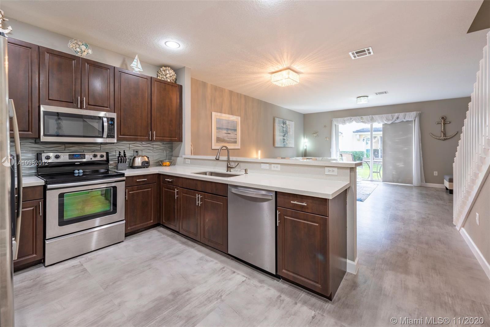 This beautiful T/Home has been extensively remodeled NEW Quartz countertops in kitchen new stainless steel fixtures. The half bathroom & Master Bath redone . The Living room floors redone to wood flooring new decor the master bathroom upstairs totally remodeled to bring to todays standards of interior design & much more. Please show your fussiest customer they wont be disappointed. You'll be sure to fall in love with the charming community and lifestyle that blooms the complex has community pool and easy access to shopping.