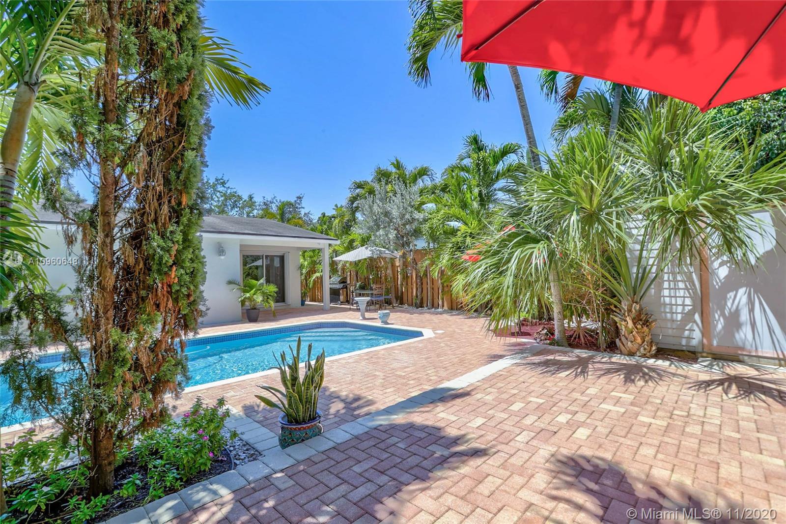 Unique opportunity to own in Rio Vista, known as the most desirable Ft.Lauderdale downtown area. This 4 bedrooms, 2.5 baths home, has a fantastic split floor plan, w/ some original features such as vaulted wood beam ceilings, wood floors, working fireplace & a Florida room. This home is in mint condition & ready to move in.Oversized master suite offers French doors leading to a luscious yard/pool area, 2 large walking closets & a large master bath w/ dual sinks. Open kitchen w/ adjacent laundry/storage room. Electrical & plumbing updated in 1994. Beautifully landscape pristine pool area, all paved with a storage shed plus additional area for a summer kitchen. Accordion shutters + impact doors throughout entire property. Stamped concrete circular driveway. 24 hours notice to show required