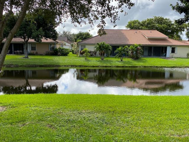 BEAUTIFUL HOME with 2 MASTER BEDROOMS & GORGEOUS LAKE VIEW! 2car garage! GLASS ENCLOSED PATIO! Spacious versatile floor plan allows for 3rd bedrm! Lovely kitchen w/wood cabinets, granite countertops, tile backsplash. Tile floors thru-out. Step down livngrm. Accordion Shutters-2016. Ext Paint-2016, Front Door-2014. A/C-2014. Appliances-2013. Walk to clubhouse, pool, & tennis. 55+ community, 1 person must be 55. 2 pets welcome up to 20 lbs each. Lovely West Boca area with lots of shopping, dining, & recreation. Walk to upscale Publix plaza. Delray Marketplace is also close by. Active clubhouse, pool, hot tub, tennis, sauna, fitness room, BBQ area, pier. HOA covers exterior paint, lawn, cable, clubhouse. January 2021 monthly HOA fee will be reduced by $50 as cable will no longer be included.