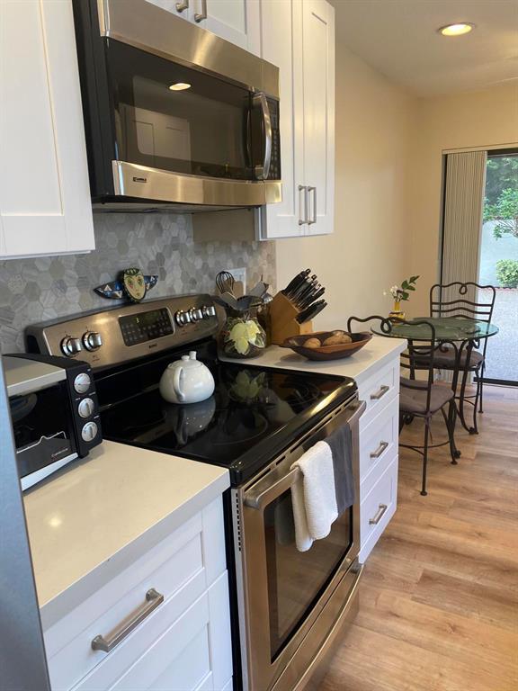 Wow ! This is a perfect doll house in the heart of Boca Raton! 2BR 2 BA plus den and oversized amazing screened patio ! Soaring ceilings welcome you to this meticulously maintained exclusive Pradera home.Tile thruout and laminate in bedrooms renovated Eat in Kitchen with stainless appliances and hurricane window ,modern clean and beautiful ...Master bathroom has been renovated to perfection huge shower all master closets built in , second bedroom private and oversized .....LED lighting ,no popcorn ceilings , inside laundry room, water softener ,full 2 car garage with impact garage door ,2017 AC roof 2005 ,private cul de sac location with extra parking what a joy to show ! Across from APlus school ,gifted program ,walk to house of worship ....Don't delay see today ..