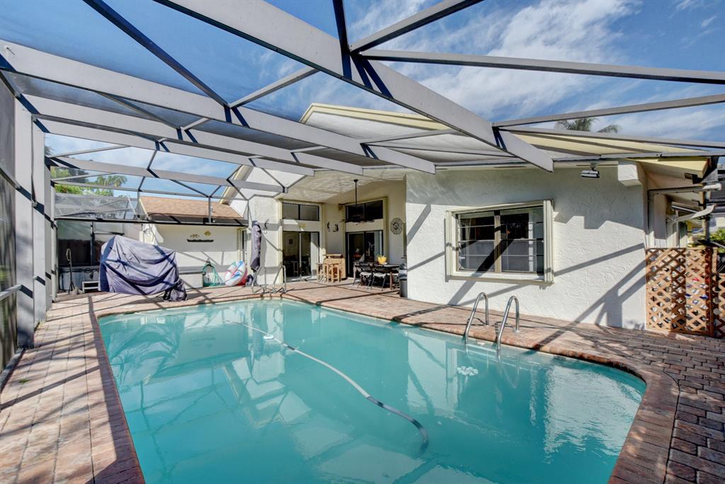 Welcome Home to PARADISE! Desirable community of Country Landing 3 in Loggers Run. 4 bedroom/ 2 bathroom SPLIT floor plan with tile throughout, and vaulted ceilings. Beautiful SCREENED in POOL patio with pavers wraps around to side of home and is a perfect spot to grill. Optional pool lift can easily be moved from pool to hot tub. Accordian hurricane shutters throughout. 220V hook up in garage for generator. Granite countertops, pass through to dining room and pool patio, stainless steel appliances in kitchen. Private lot with no rear neighbors. Excellent Schools, PET Friendly, Low HOA. Conveniently located to major highways, shopping, dining, and entertainment including the new Uptown Boca. This home has it all! WELCOME to the HOME of your DREAMS!