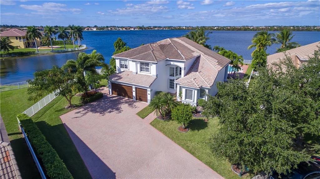 GORGEOUS UPGRADED HOME WITH AN OVERSIZED POOL ON THE BIG LAKE WITH AN EXPANSIVE 24,000+ SQ/FT LOT ON A CUL-DE-SAC IN SUNSET LAKES! THIS HOME HAS BEEN FRESHLY PAINTED INSIDE AND OUT! THIS HOME FEATURES STUNNING GRANITE FLOORING ON THE LOWER LEVEL AND REAL HARDWOOD FLOORING ON THE STAIRS AND UPPER LEVEL. MASTER SUITE & MINI MASTER LOCATED ON THE LOWER LEVEL. CUSTOM KITCHEN WITH GRANITE COUNTERTOPS, HARDWOOD CABINETRY, CENTER ISLAND & SNACK BAR. ADDITIONAL BEDROOMS ON THE UPPER LEVEL INCLUDING A LOFT. YOU WILL LOVE THE BACKYARD AS IT HAS A SCREEN ENCLOSED PATIO, LARGE POOL, MILE WIDE LAKE VIEWS & A HUGE GRASSY AREA, THIS IS IDEAL FOR A LARGE FAMILY OR ENTERTAINING. THE EXTENDED DRIVEWAY CAN FIT UP TO 10 CARS! THIS HOME IS PROTECTED BY ACCORDION SHUTTERS.